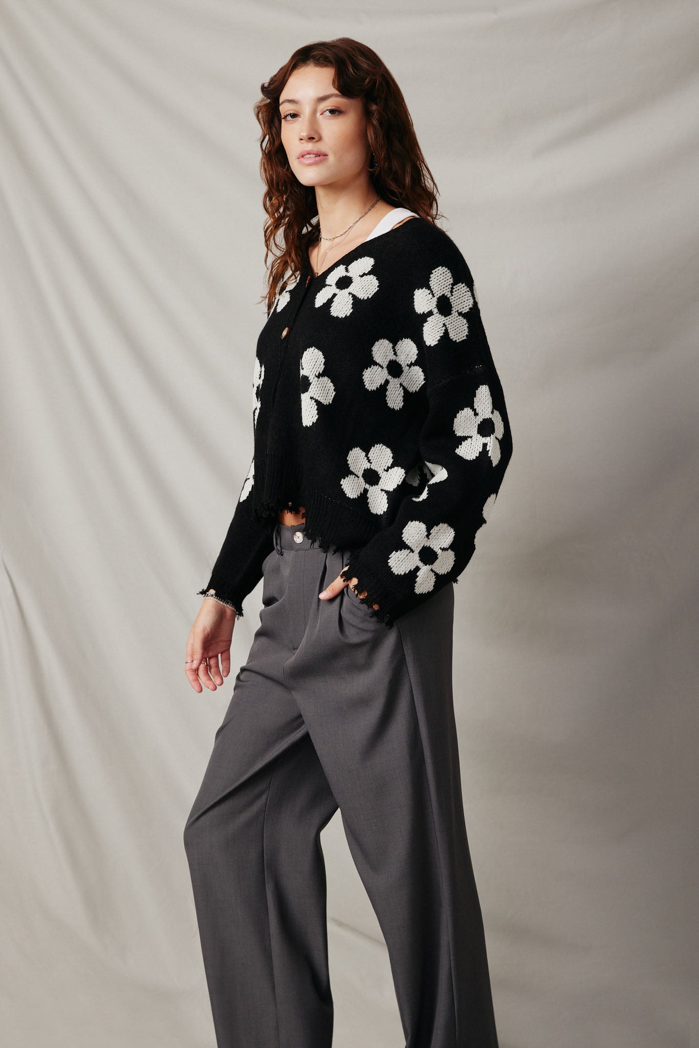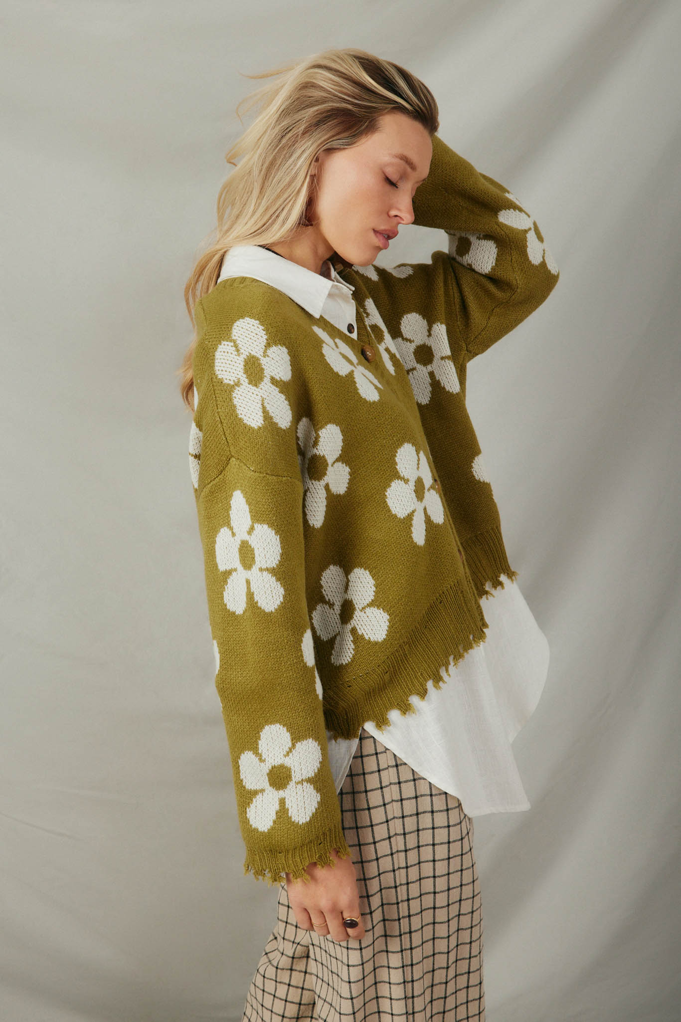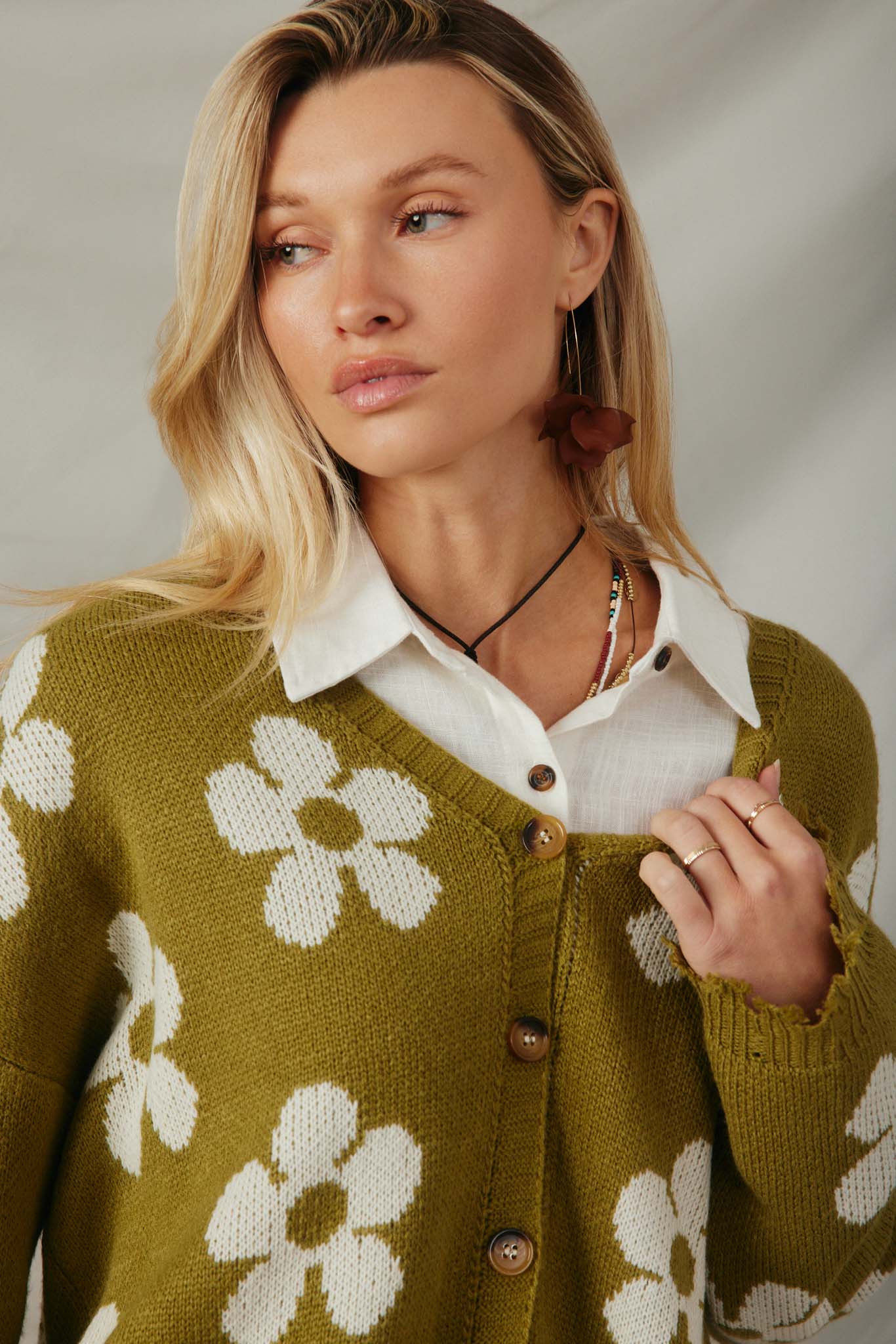 Our Womens Distressed Floral Patterned Cardigan Features: