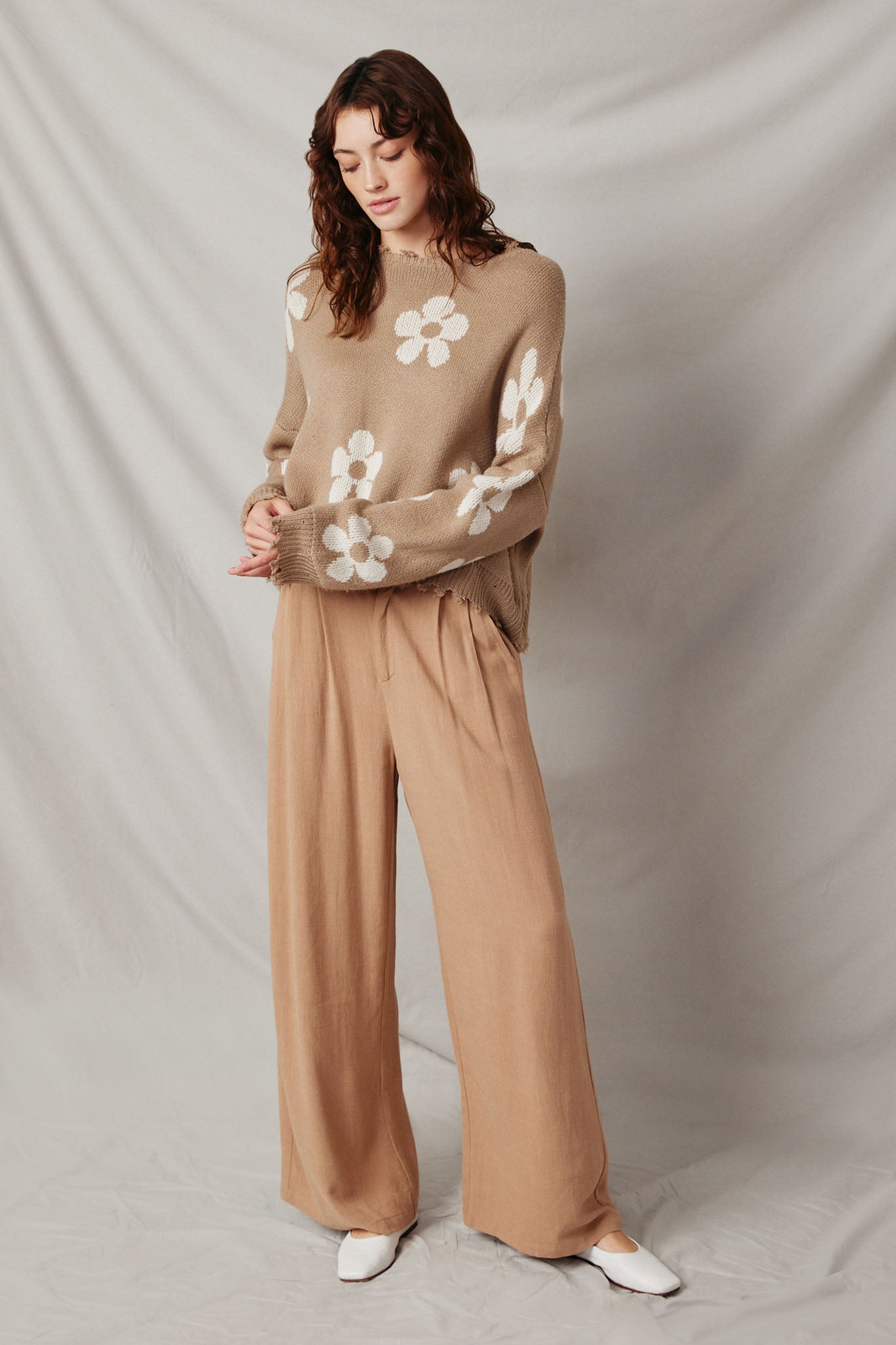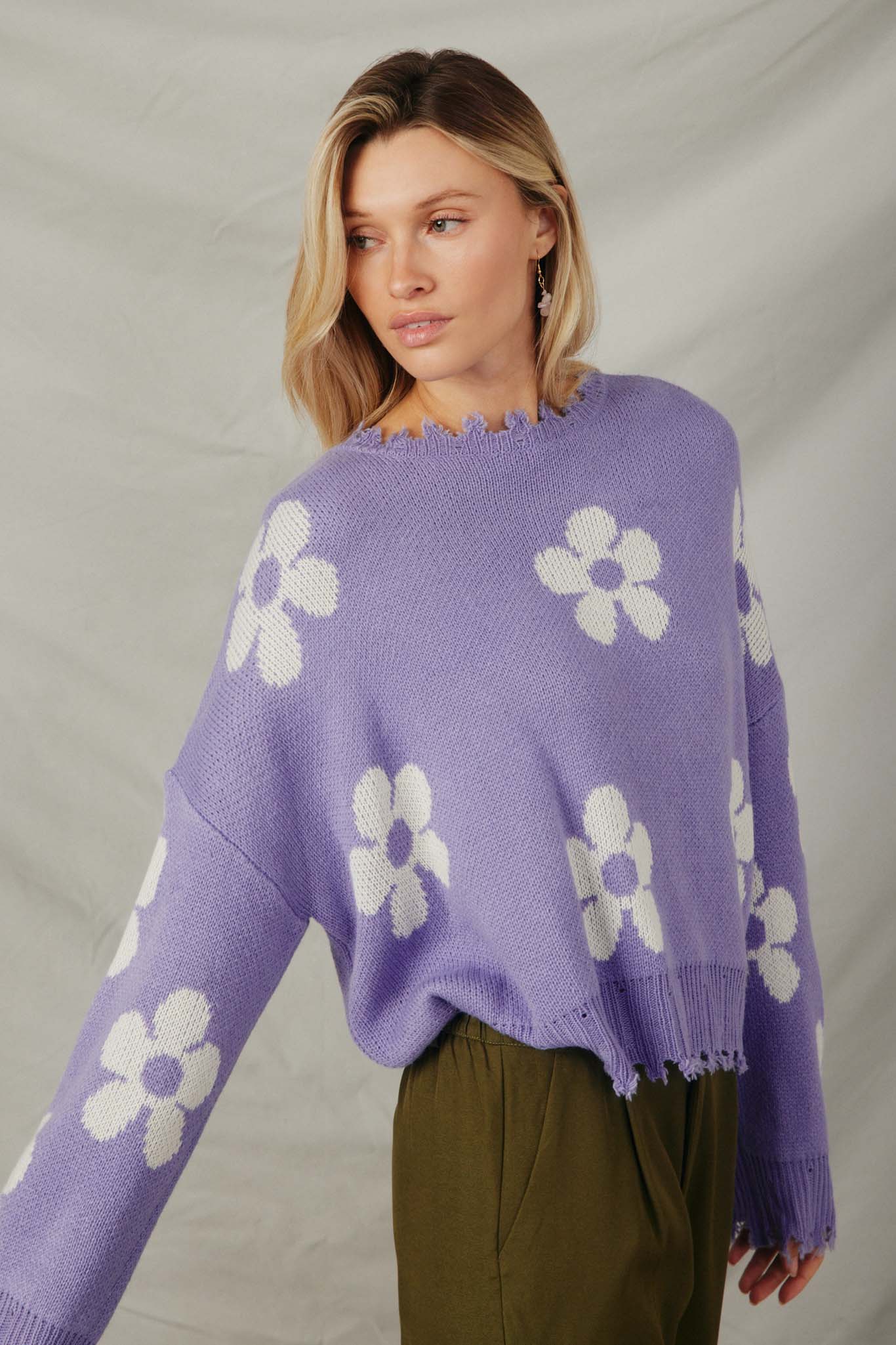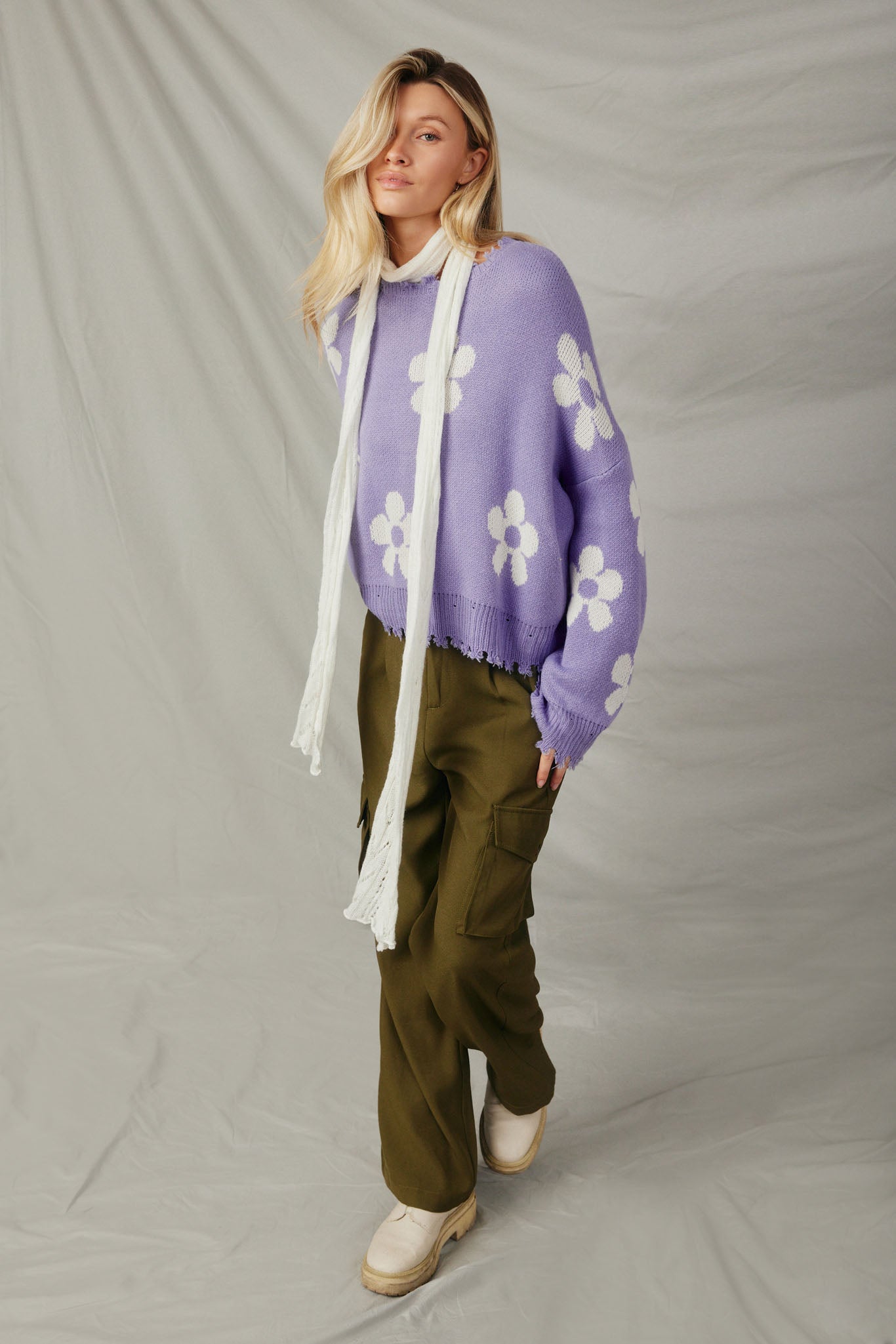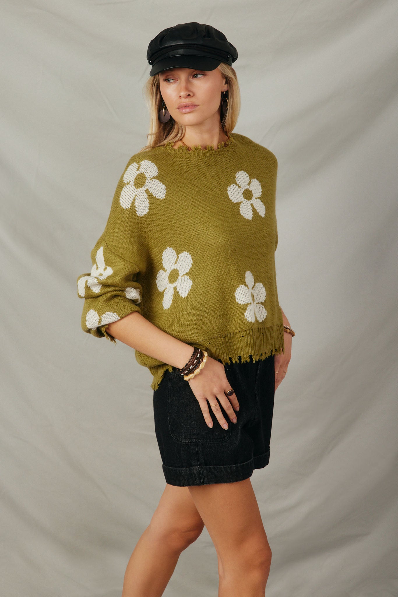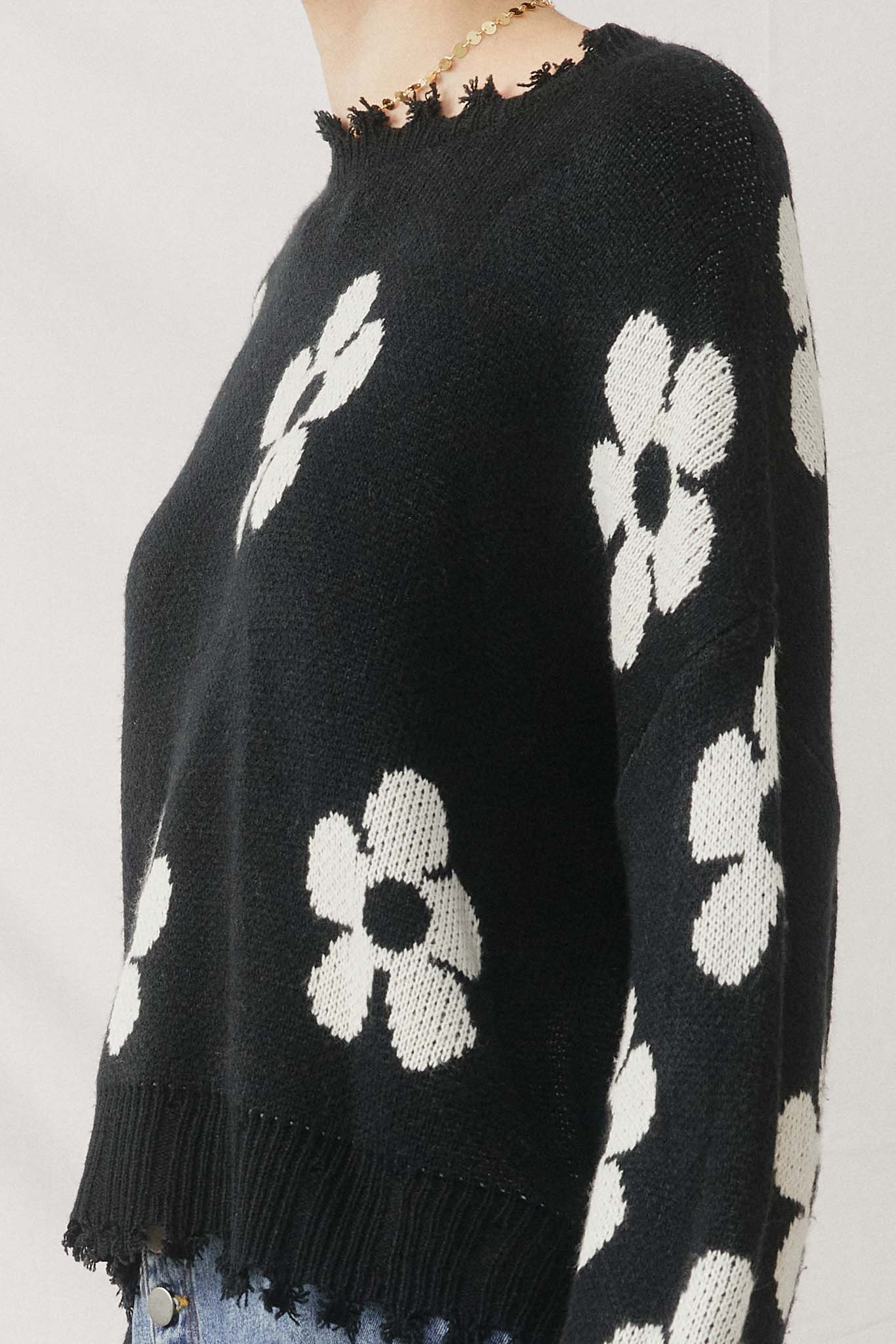 Our Distressed Floral Patterned Pullover Sweater Features: