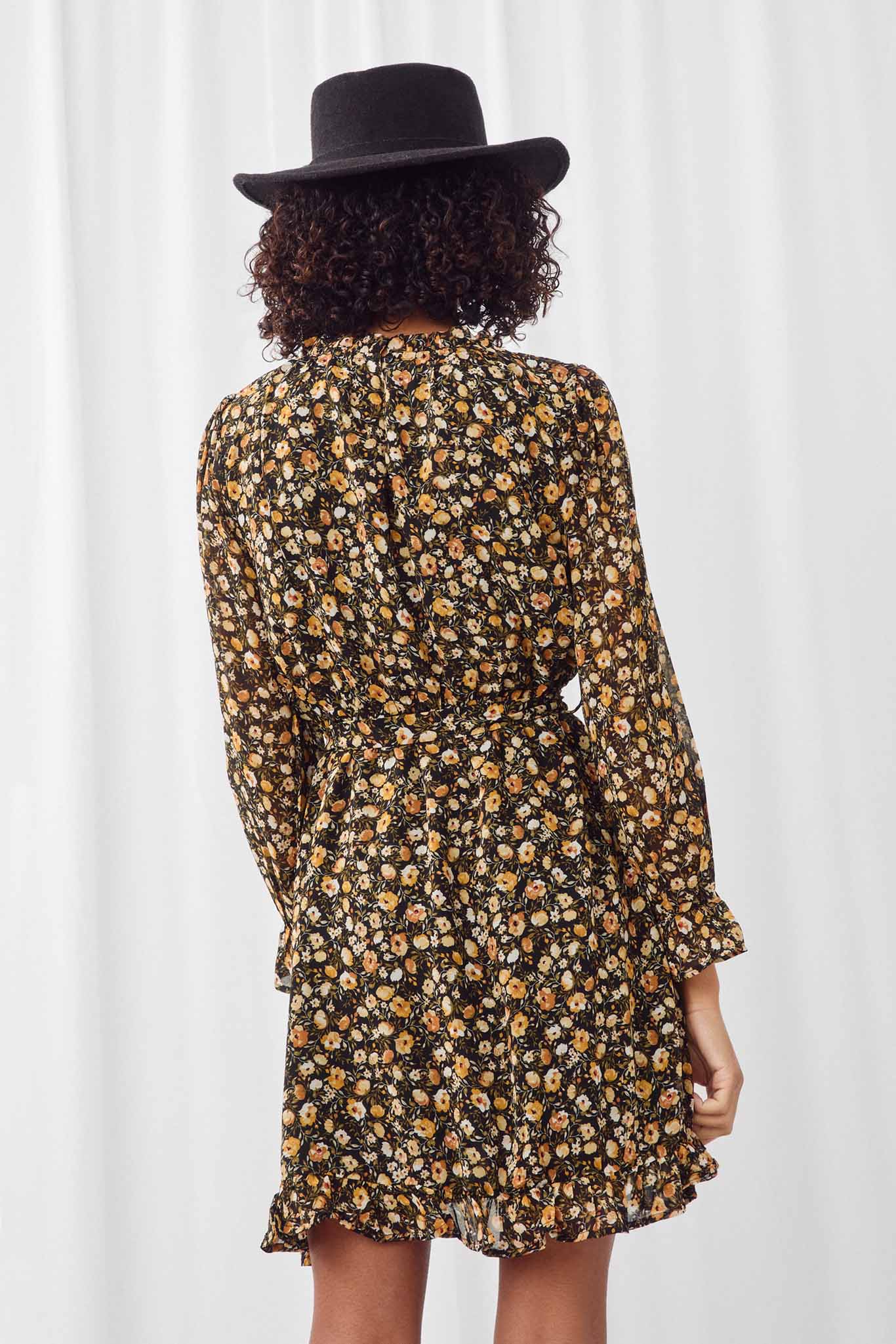 Our Womens Floral Print Ruffle Neck Dress with Belt Features:
