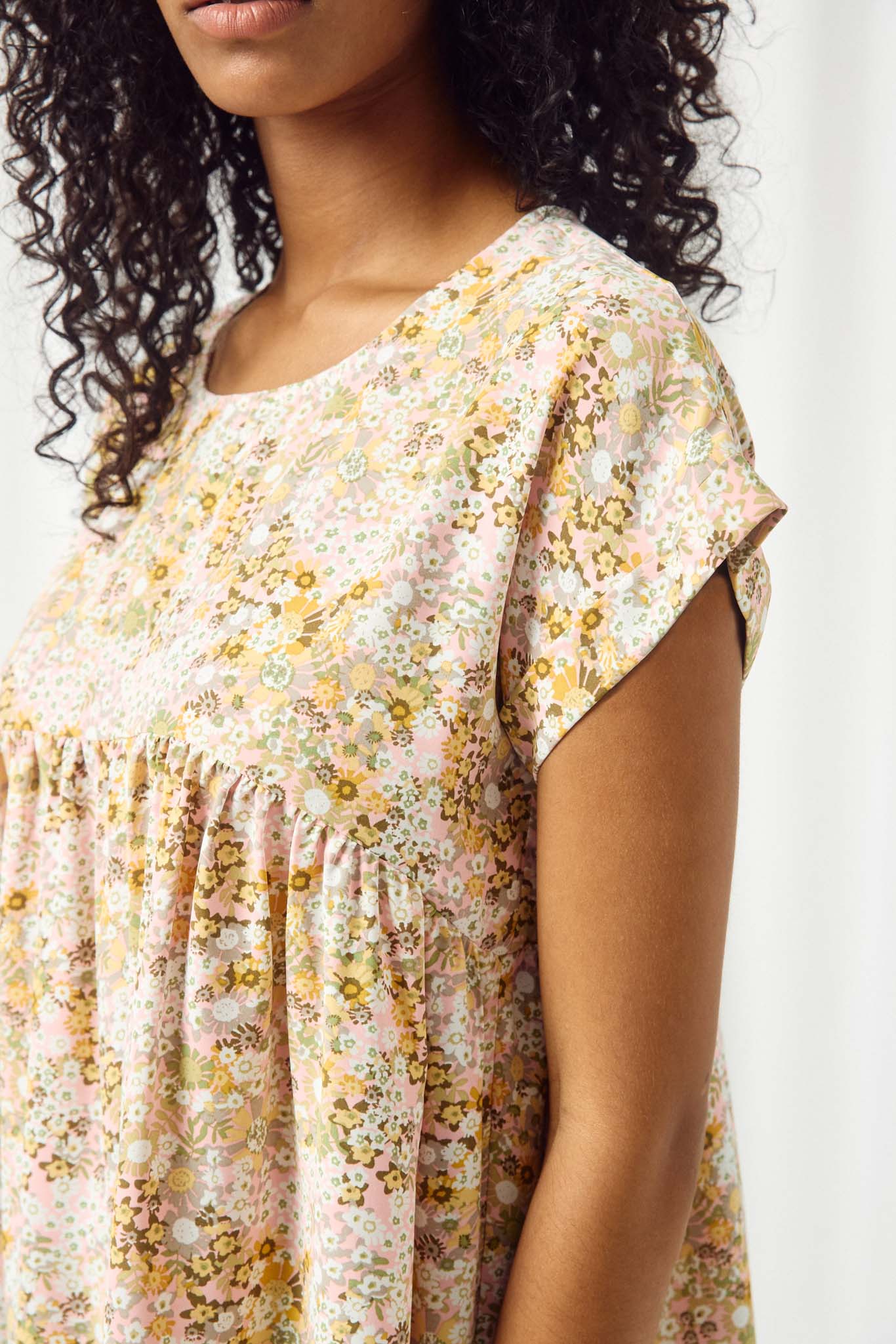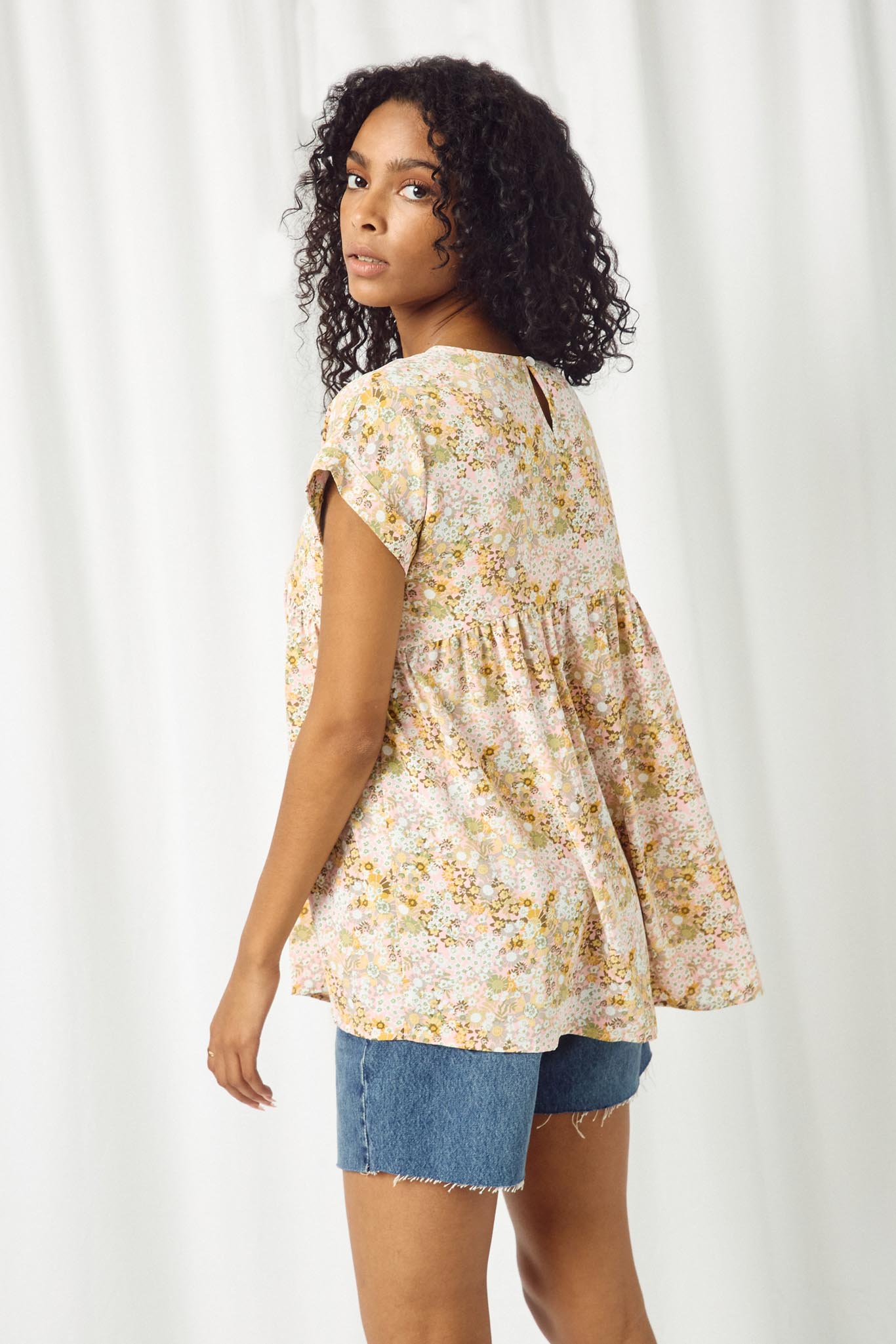 Our Mixed Floral Roll Sleeve Peplum Top Features: