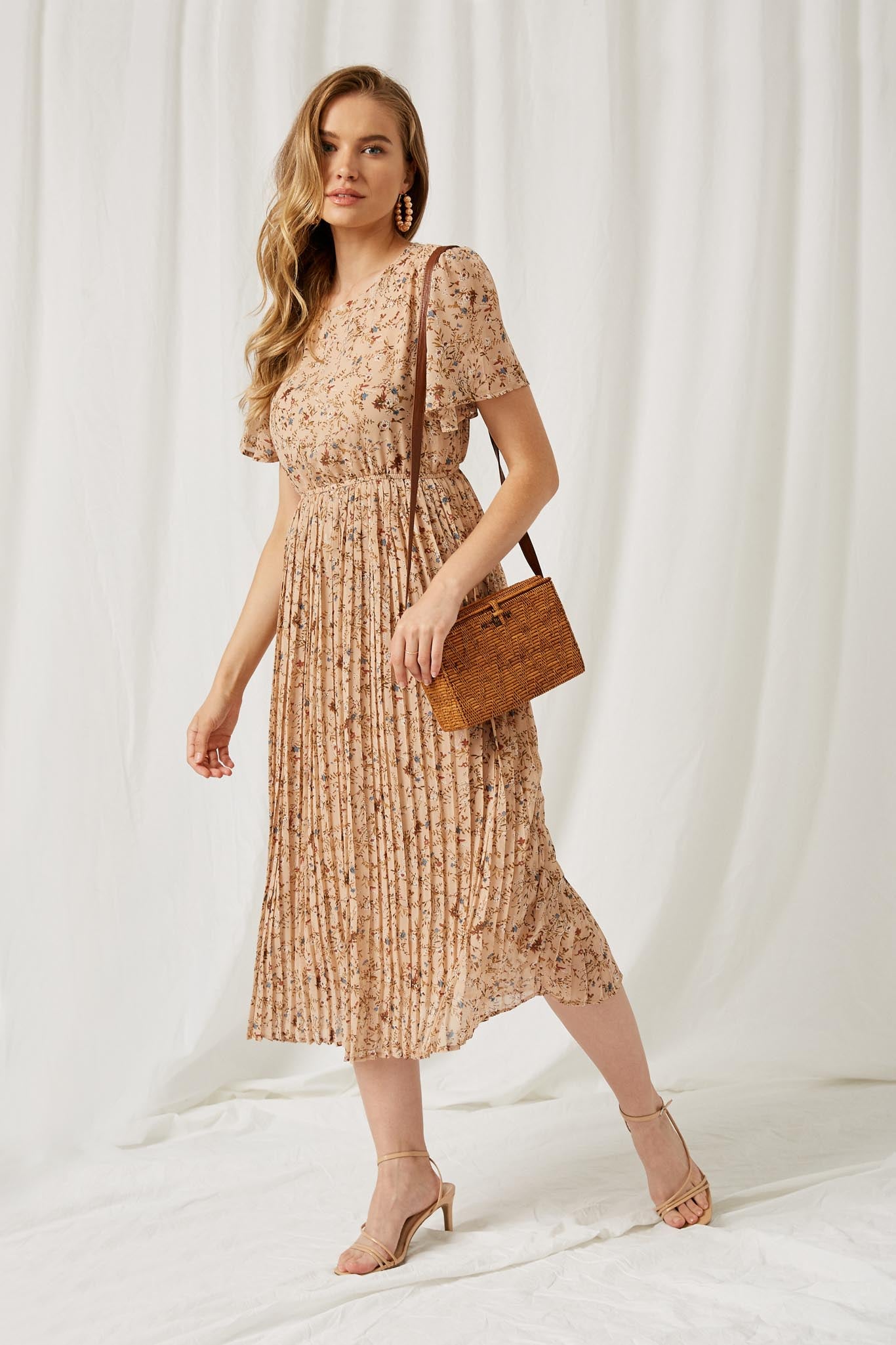 Product Details:Our Floral Print Tiered Dress With Tie Detail Features: Floral Woven Fabric Round Cut Neckline Spaghetti Strap Measurements: Size Length Chest Small 44" 18" Medium 44.75" 19" Large 45.5" 20" The measurements in the chart above reflect the garment...