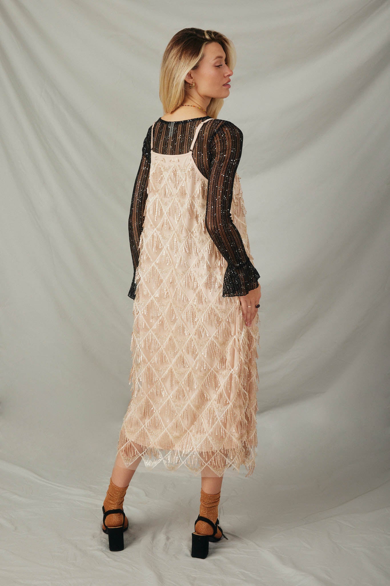 Our Quilt Pattern Sequined Long Fringe Dress Features: