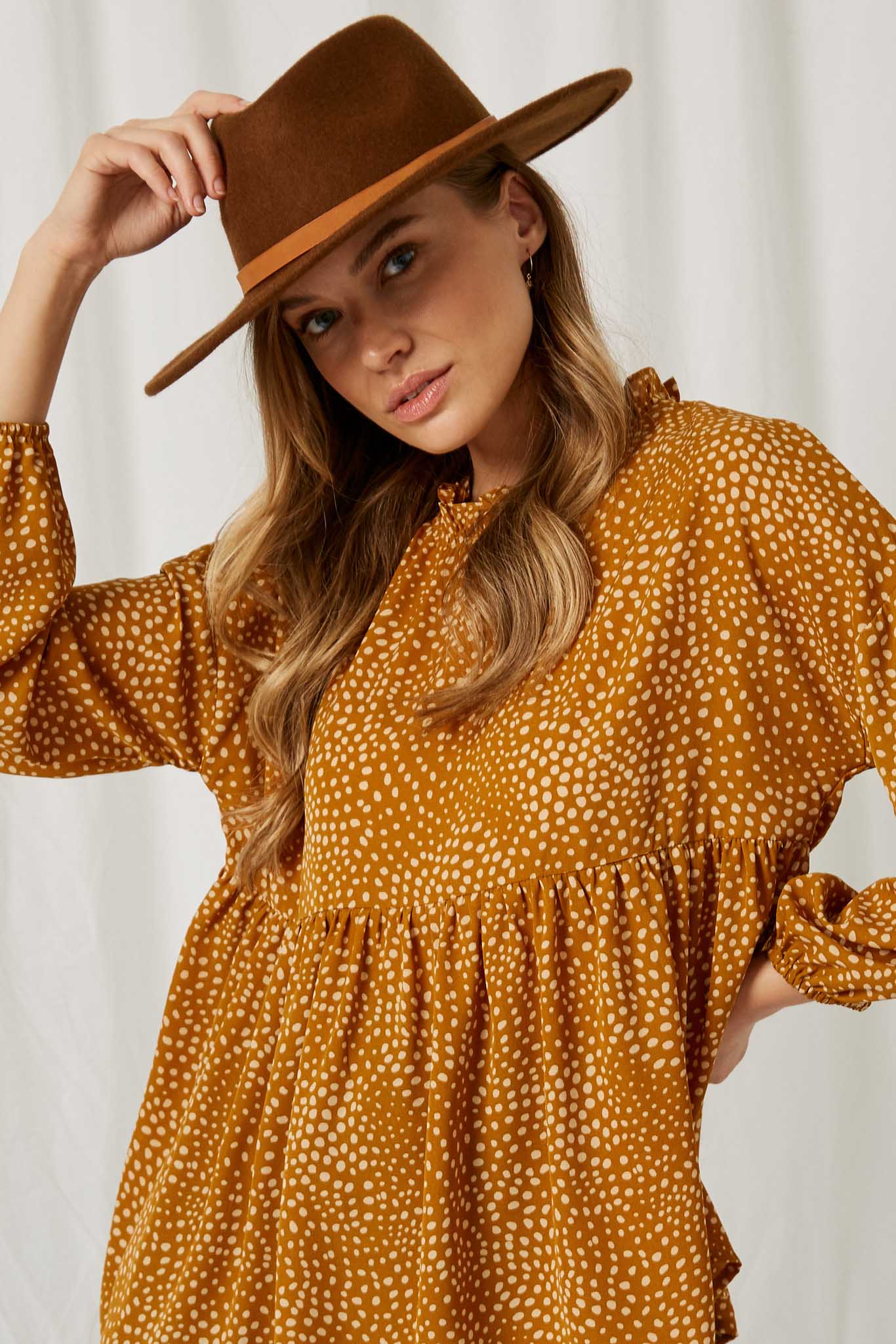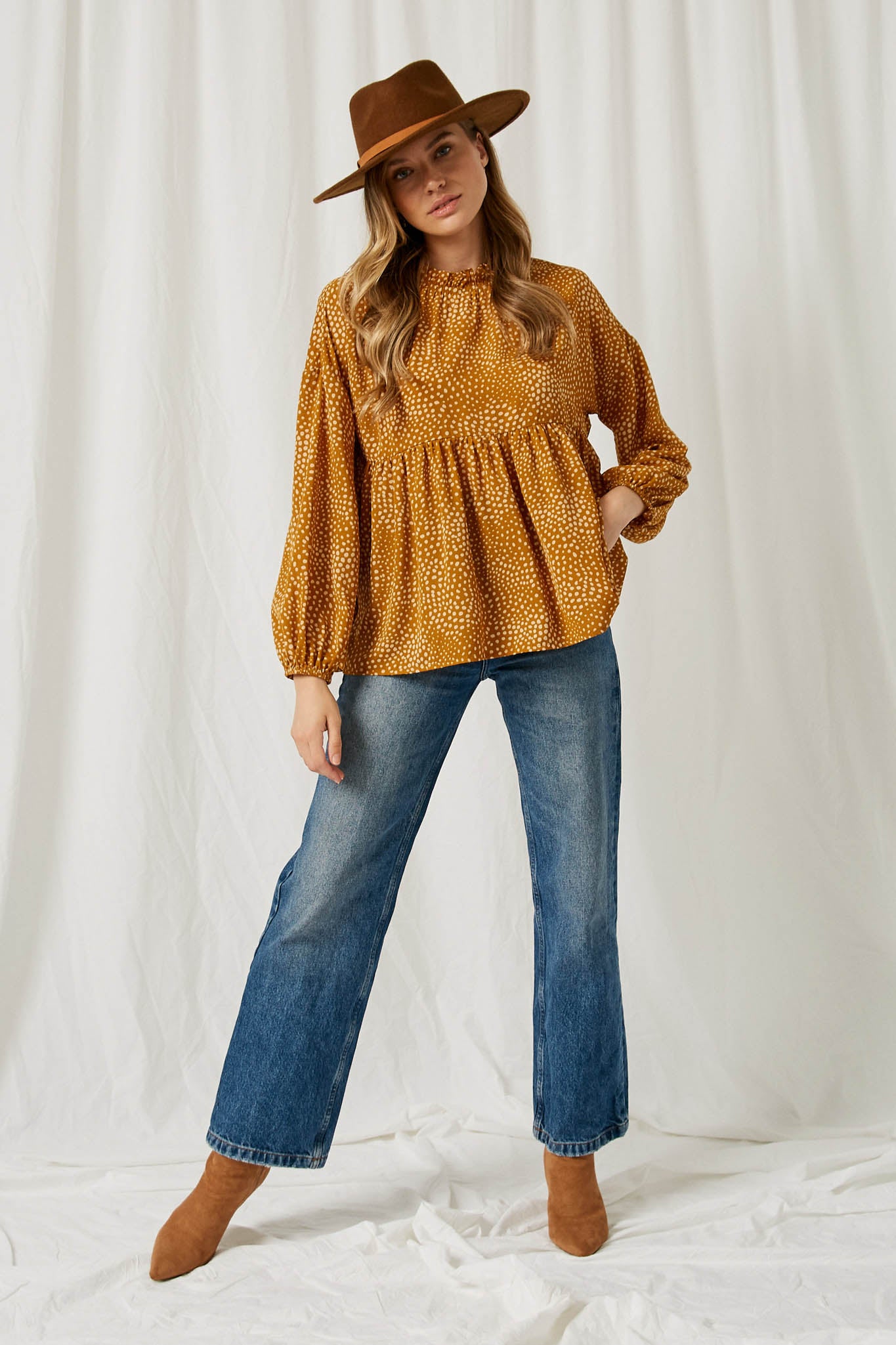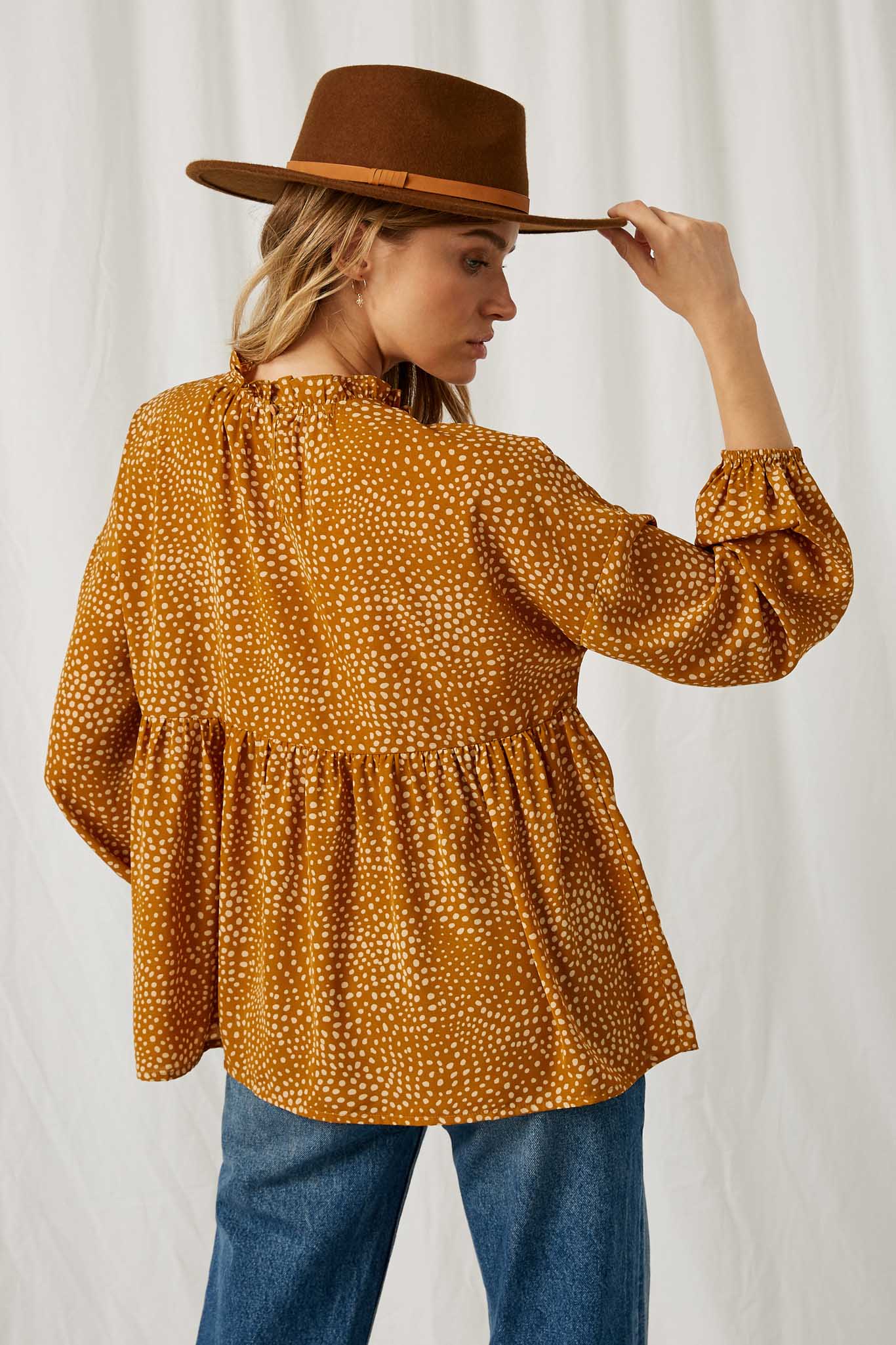 Our Ruffle Neck Long Sleeve Babydoll Top Features: