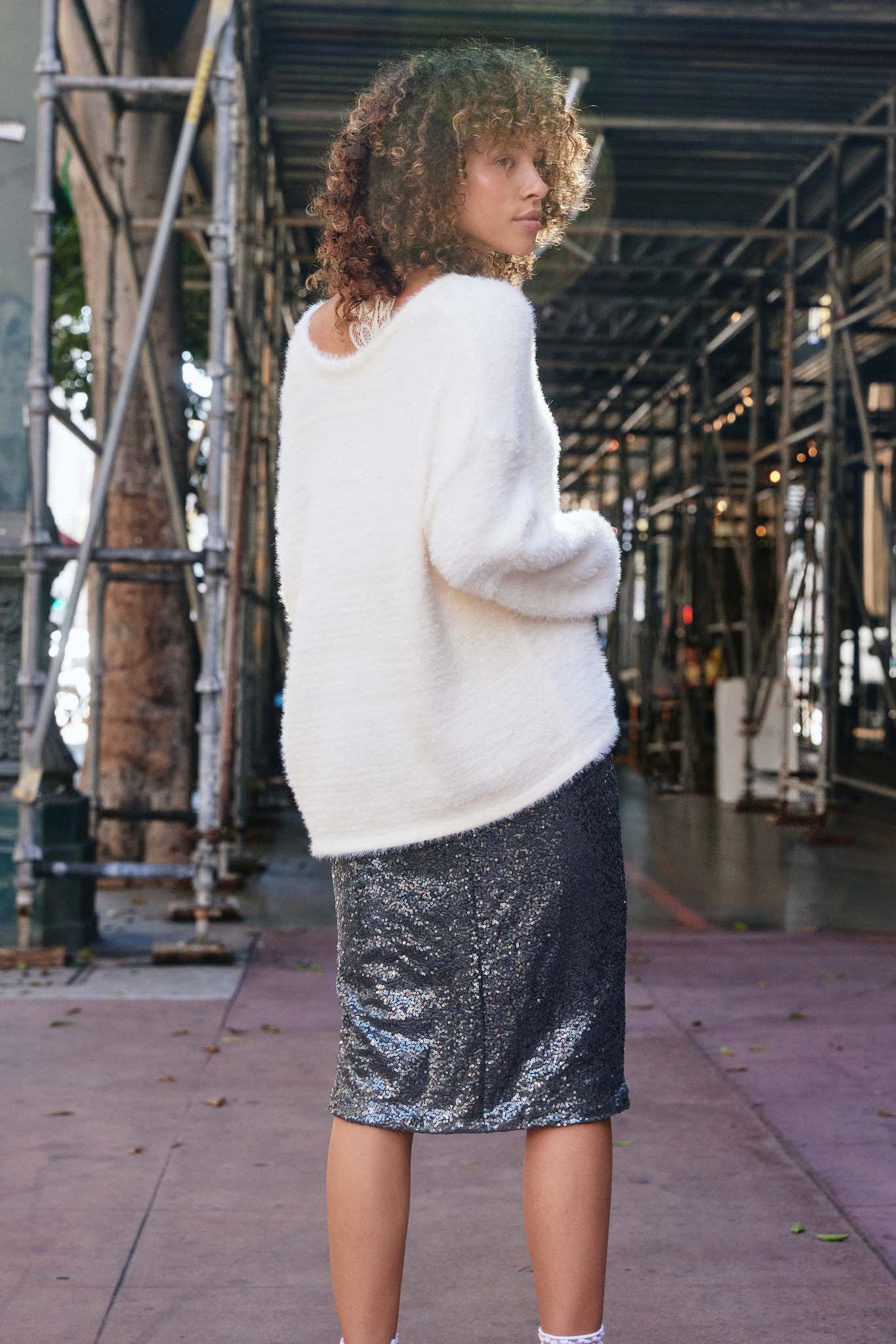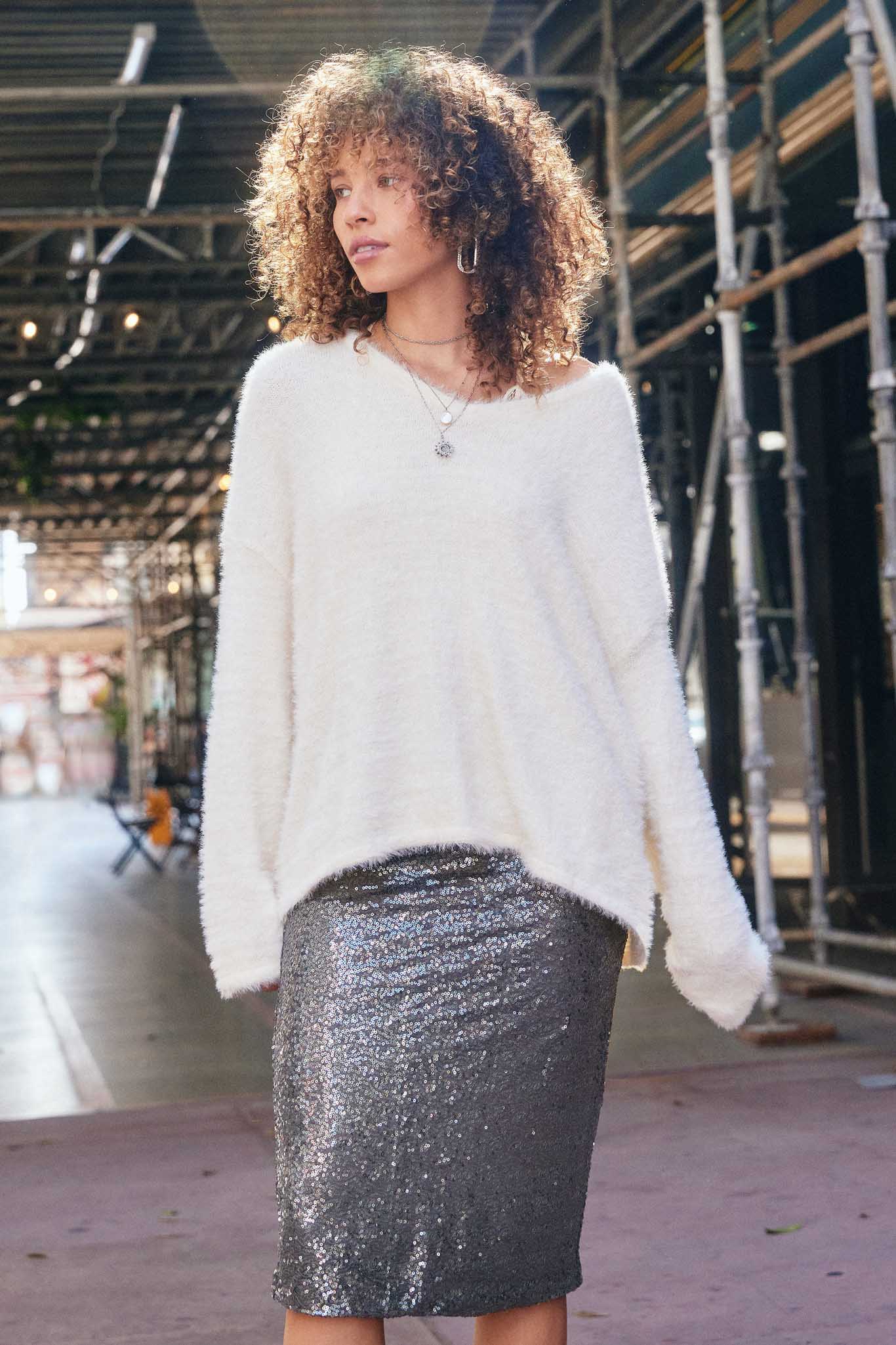 Brushed Button Detail V Neck Cuffed Dolman Knit Top