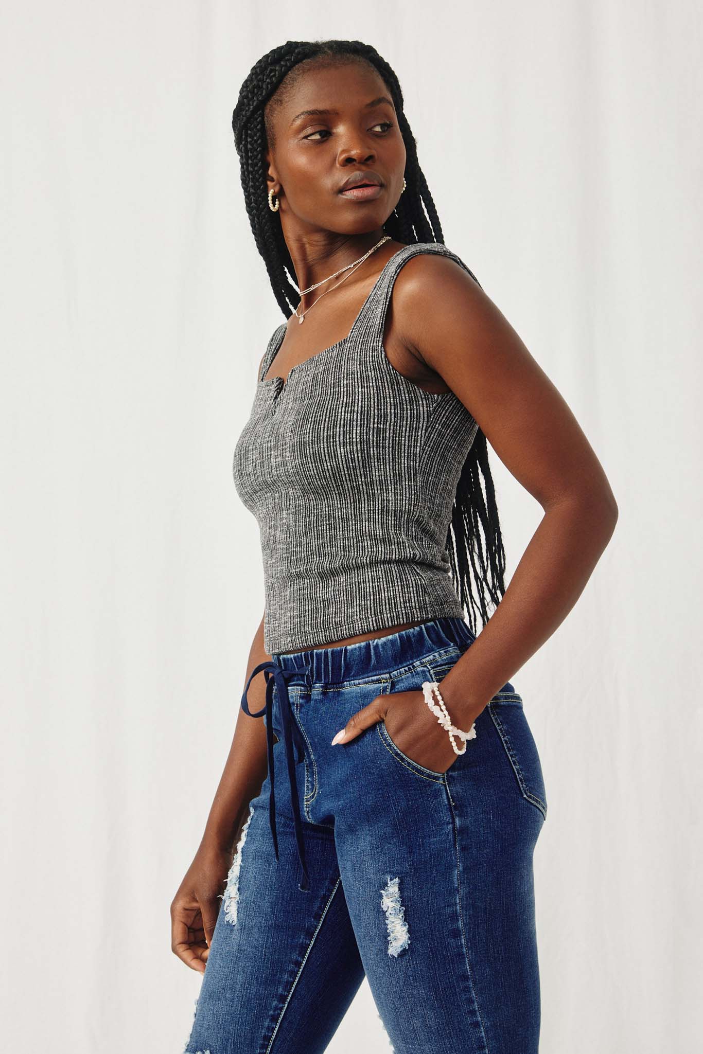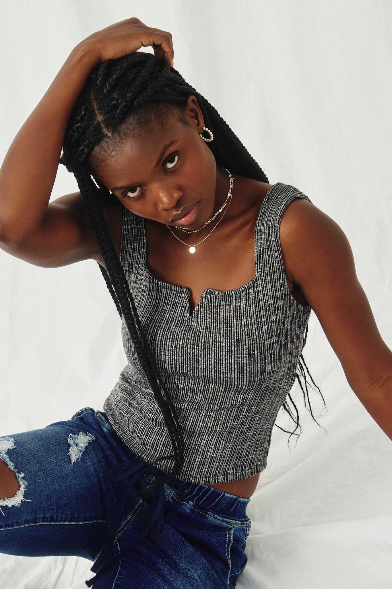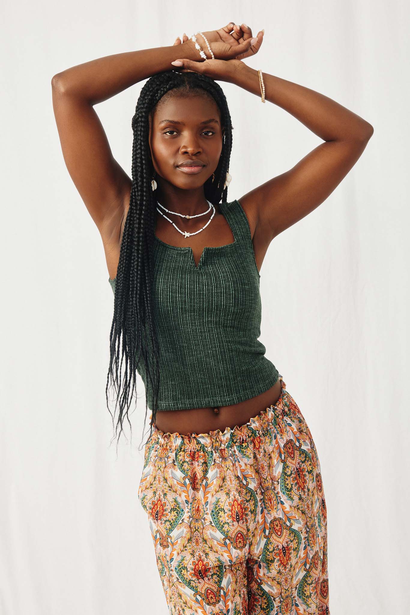 Our Notch Detail Rib Knit Fitted Tank Features:
