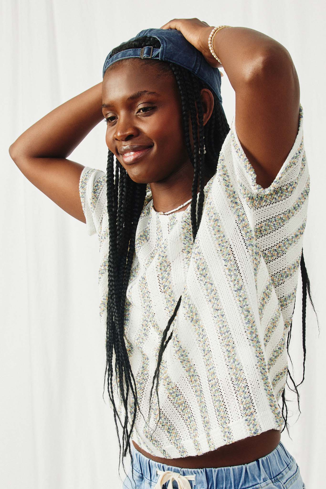 Product Details:Our Hand Knit Floral Patch Sweater Top Features: Floral Knit Sweater Round Cut Neckline Short Sleeve Measurements: Size Length Chest Small 21" 17.75" Medium 22" 18.75" Large 23" 19.75" The measurements in the chart above reflect the garment laying...
