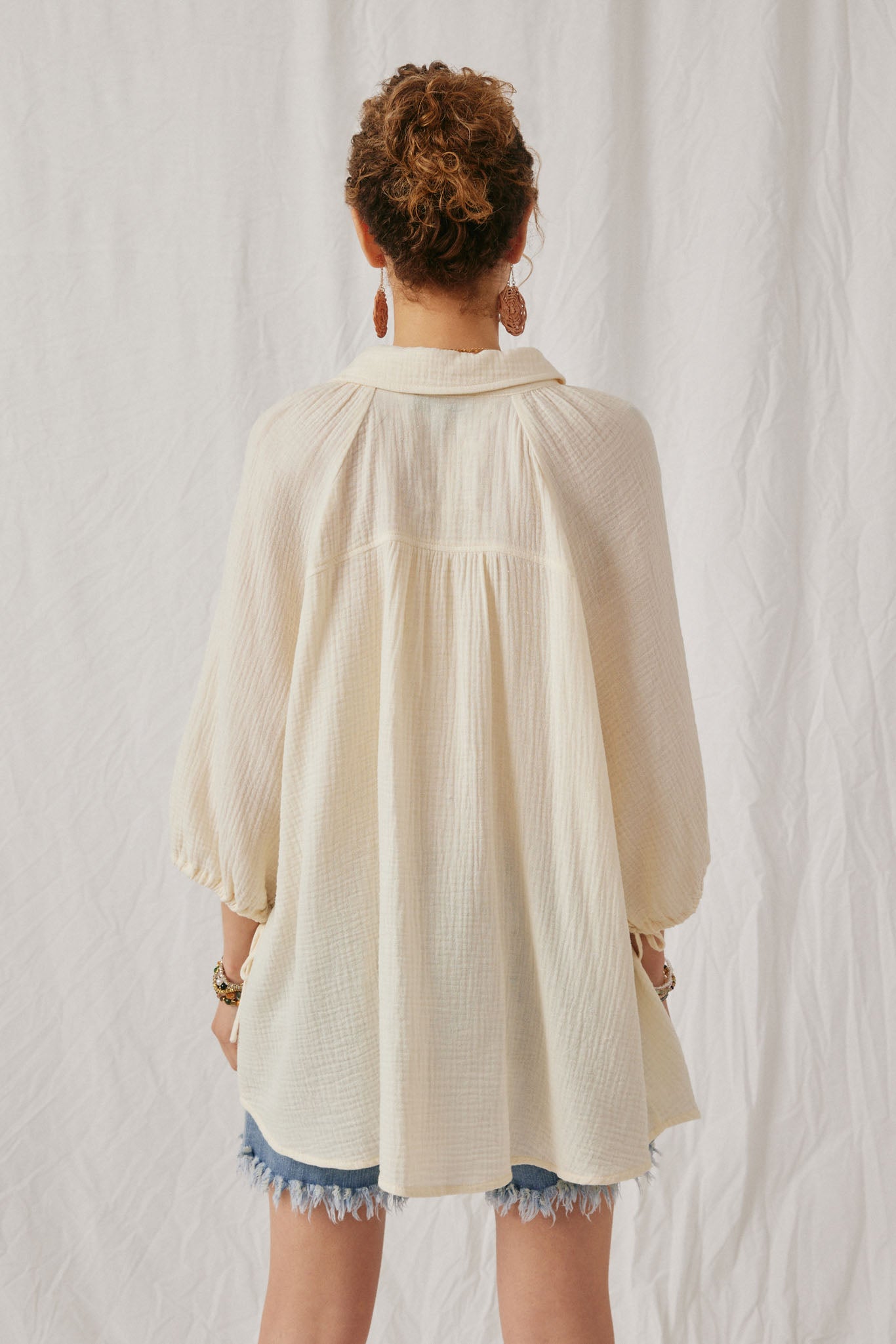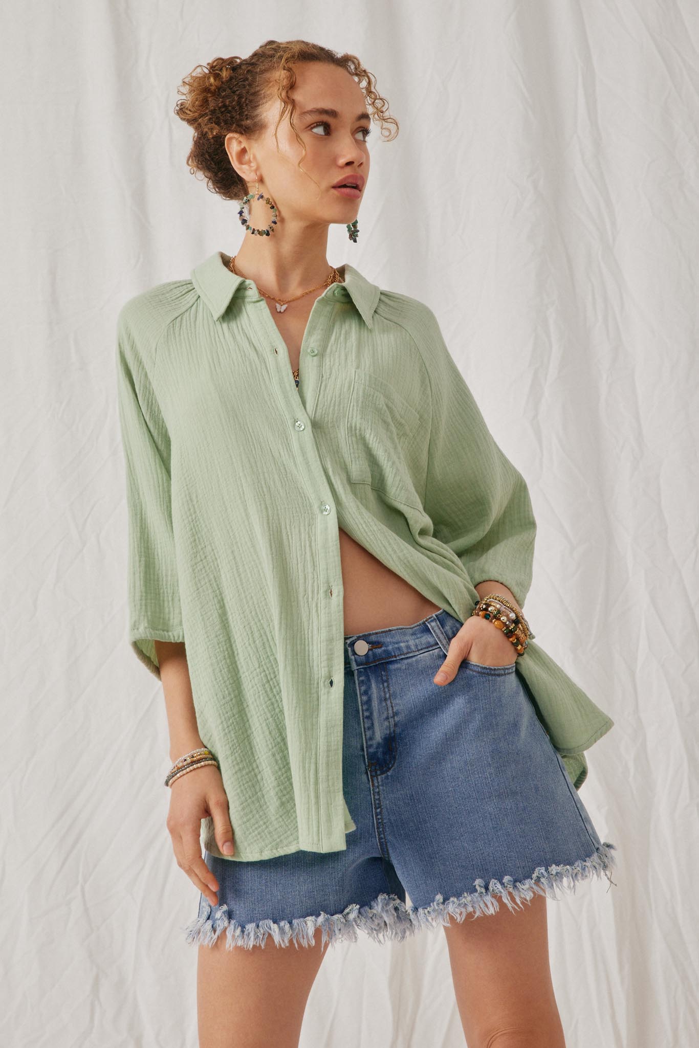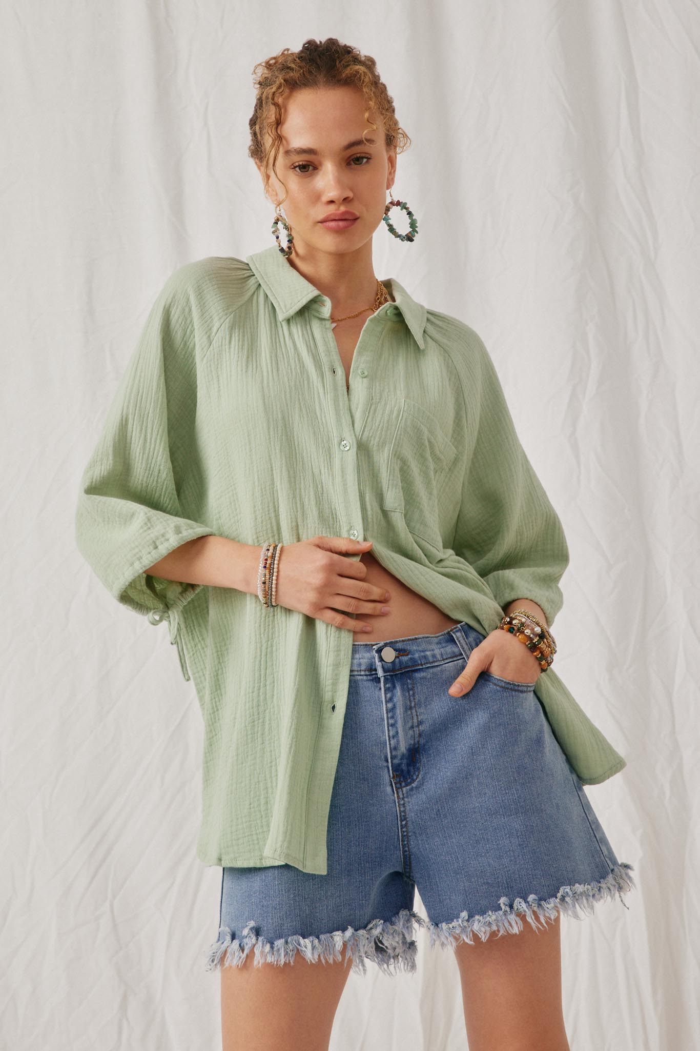 Our Crinkle Texture Tie Sleeve Button Up Shirt Features: