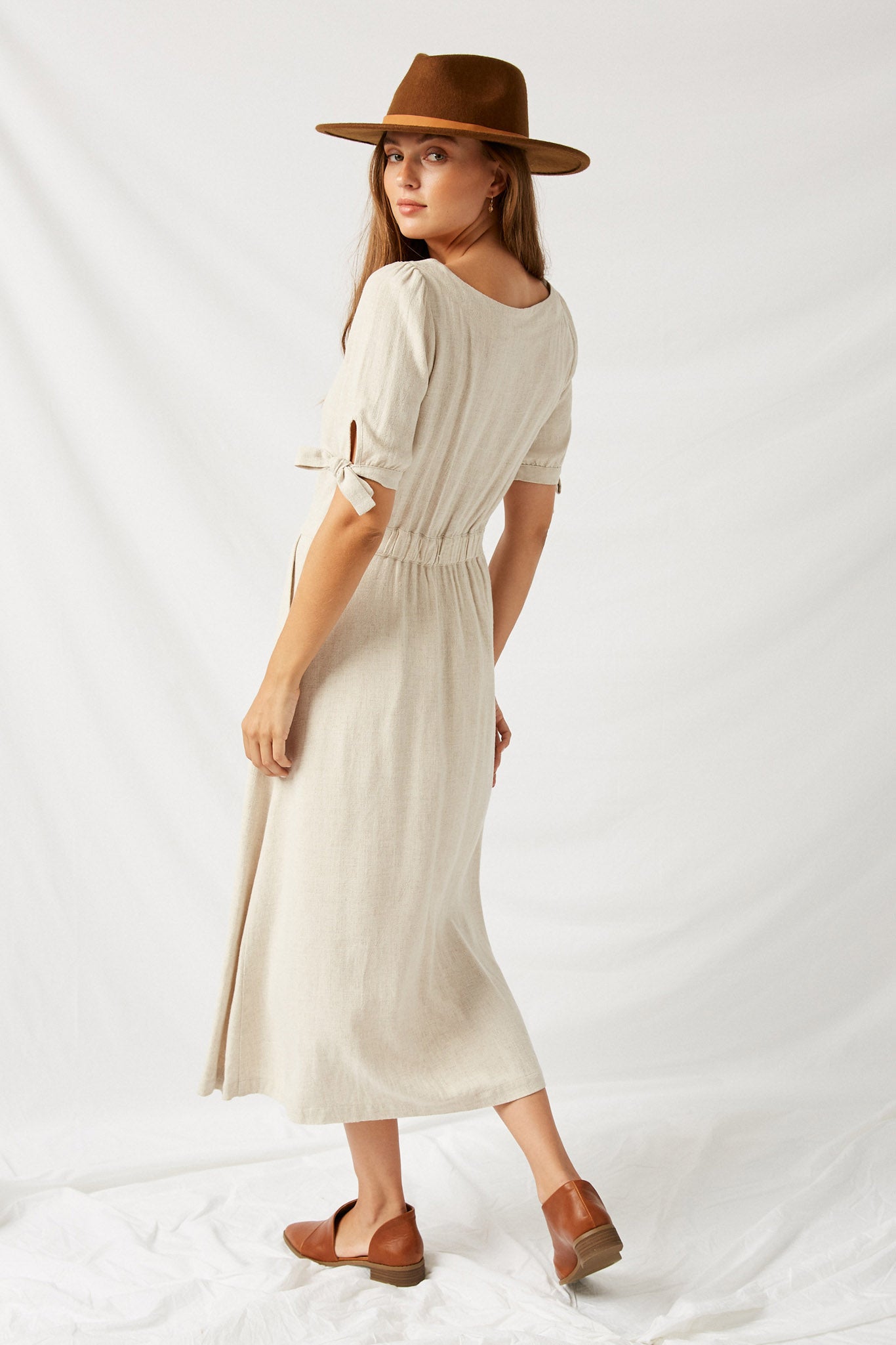 Our Linen Button-Down Midi Dress Features: