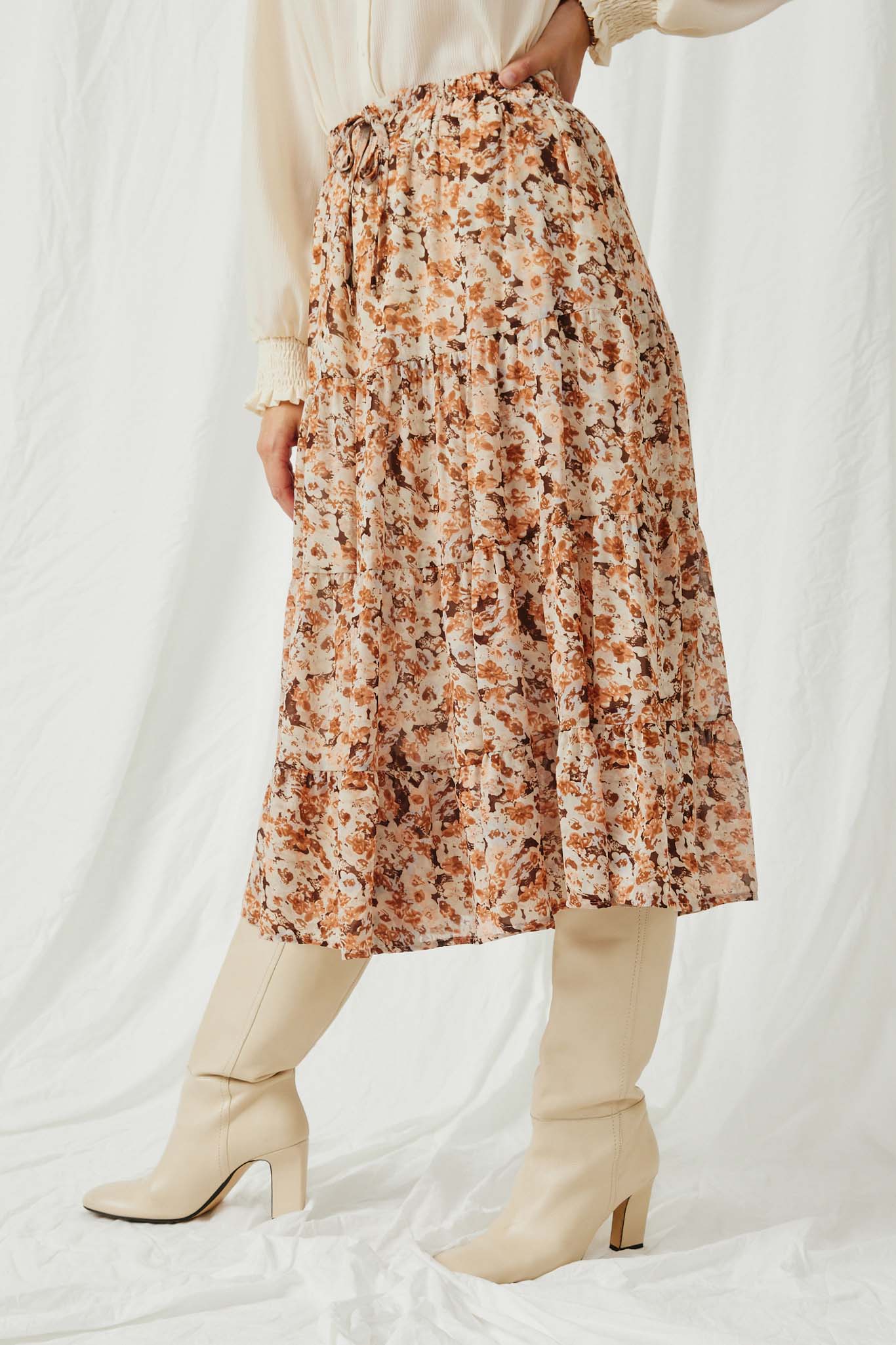 Our Floral Printed Elastic Waist Midi Skirt Features: