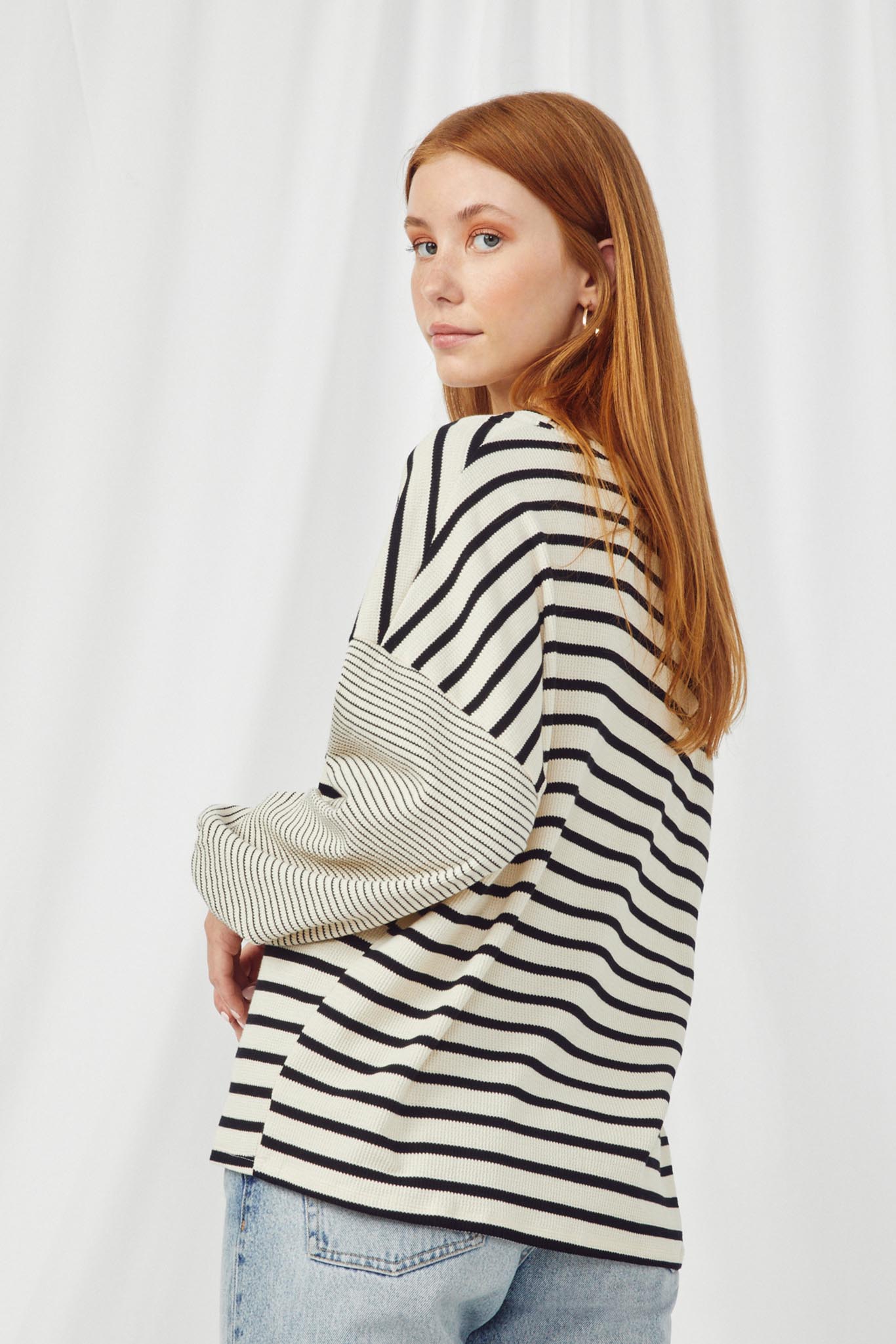Our Contrast Stripe Sleeve Textured Knit Top Features: