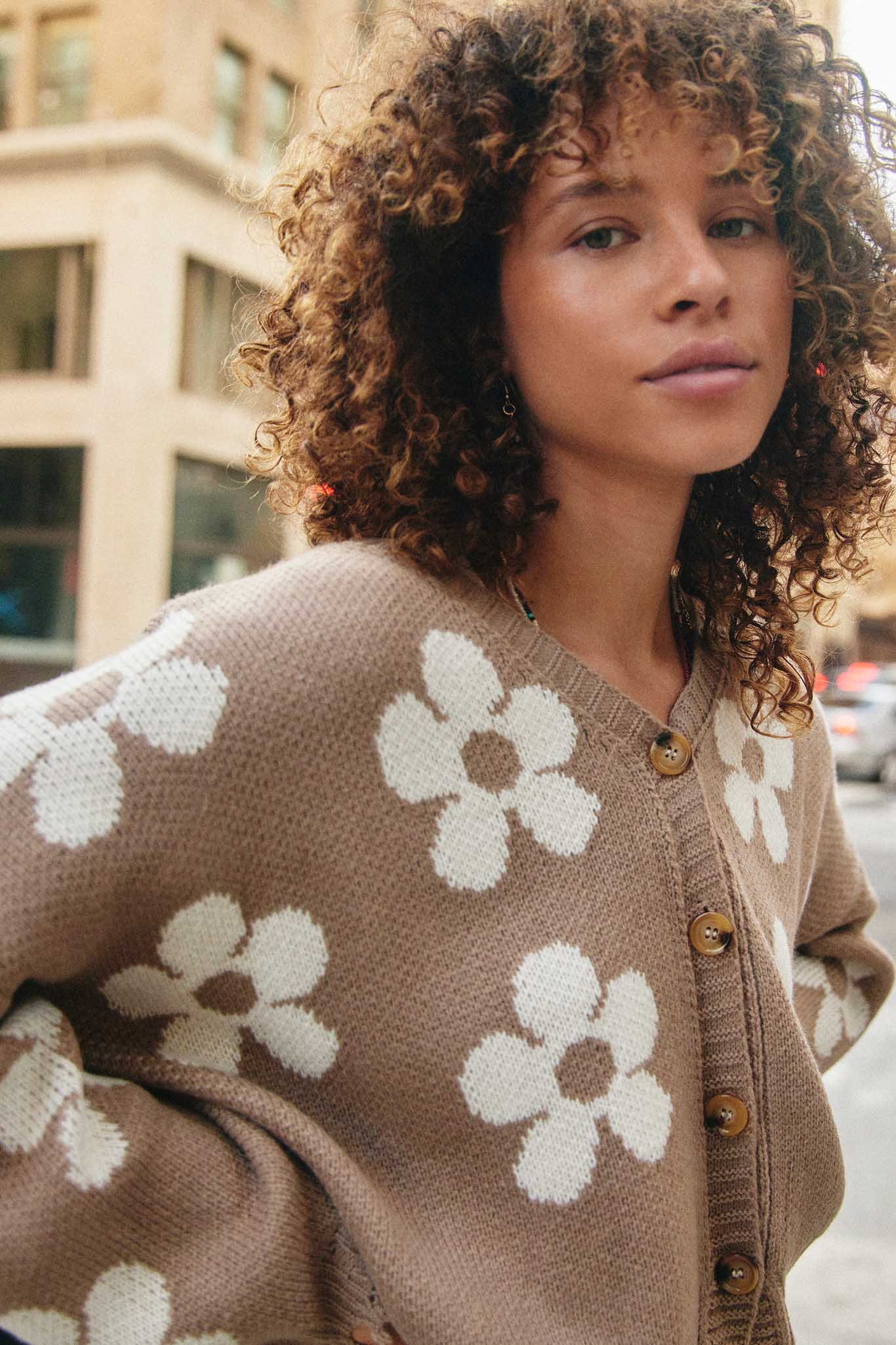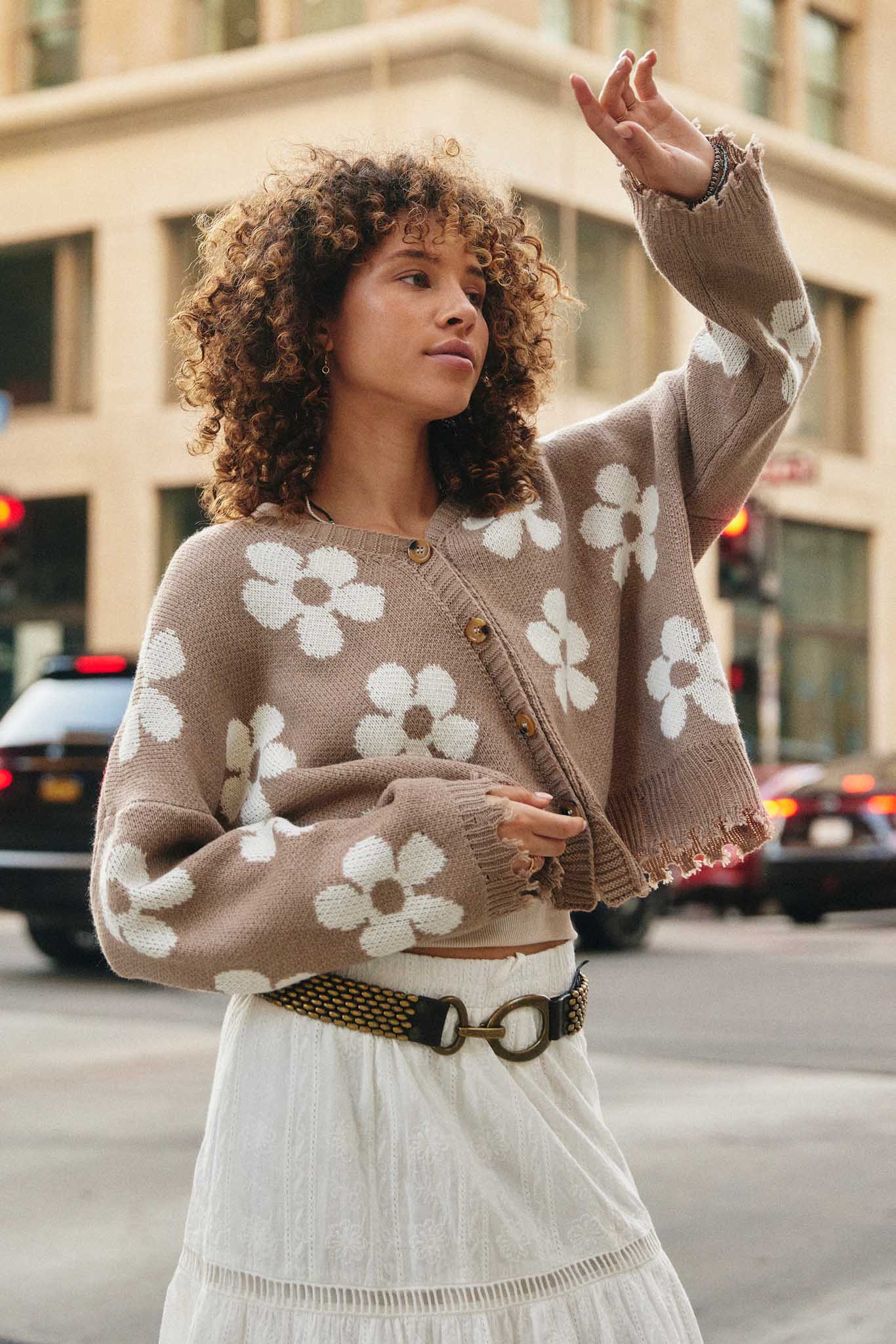 Our Womens Distressed Floral Patterned Cardigan Features: