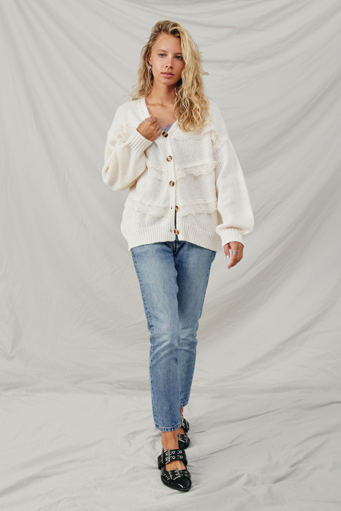 Our Lace Frilled Buttoned Sweater Cardigan Features:
