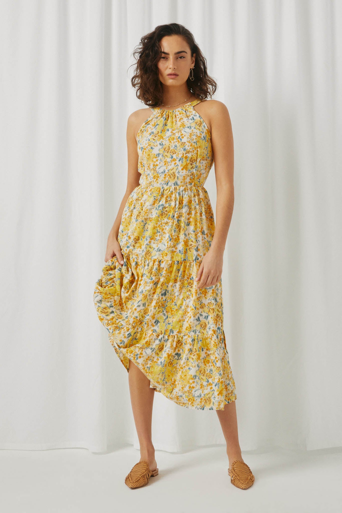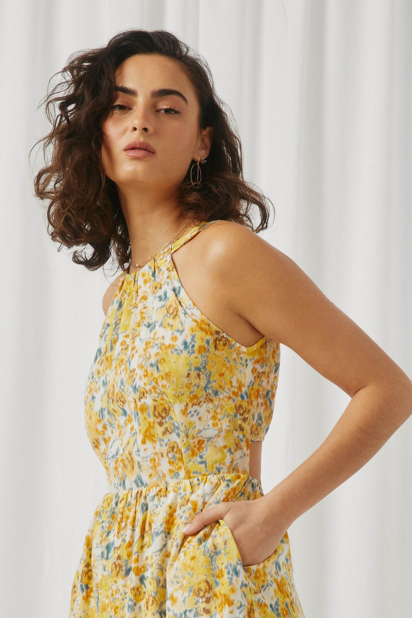 Our Criss Cross Cutout Back Floral Halter Dress Features: