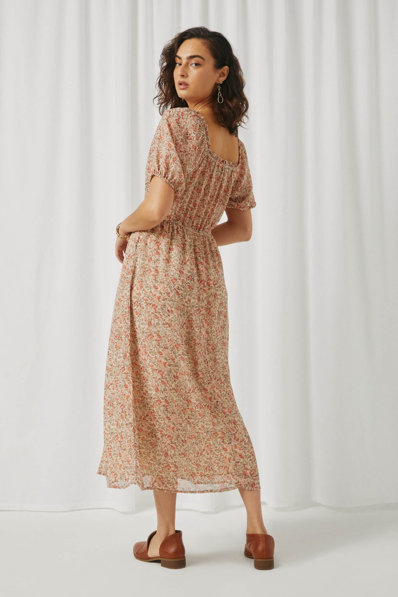 Ditsy Floral Puff Sleeve Smocked Square Neck Dress