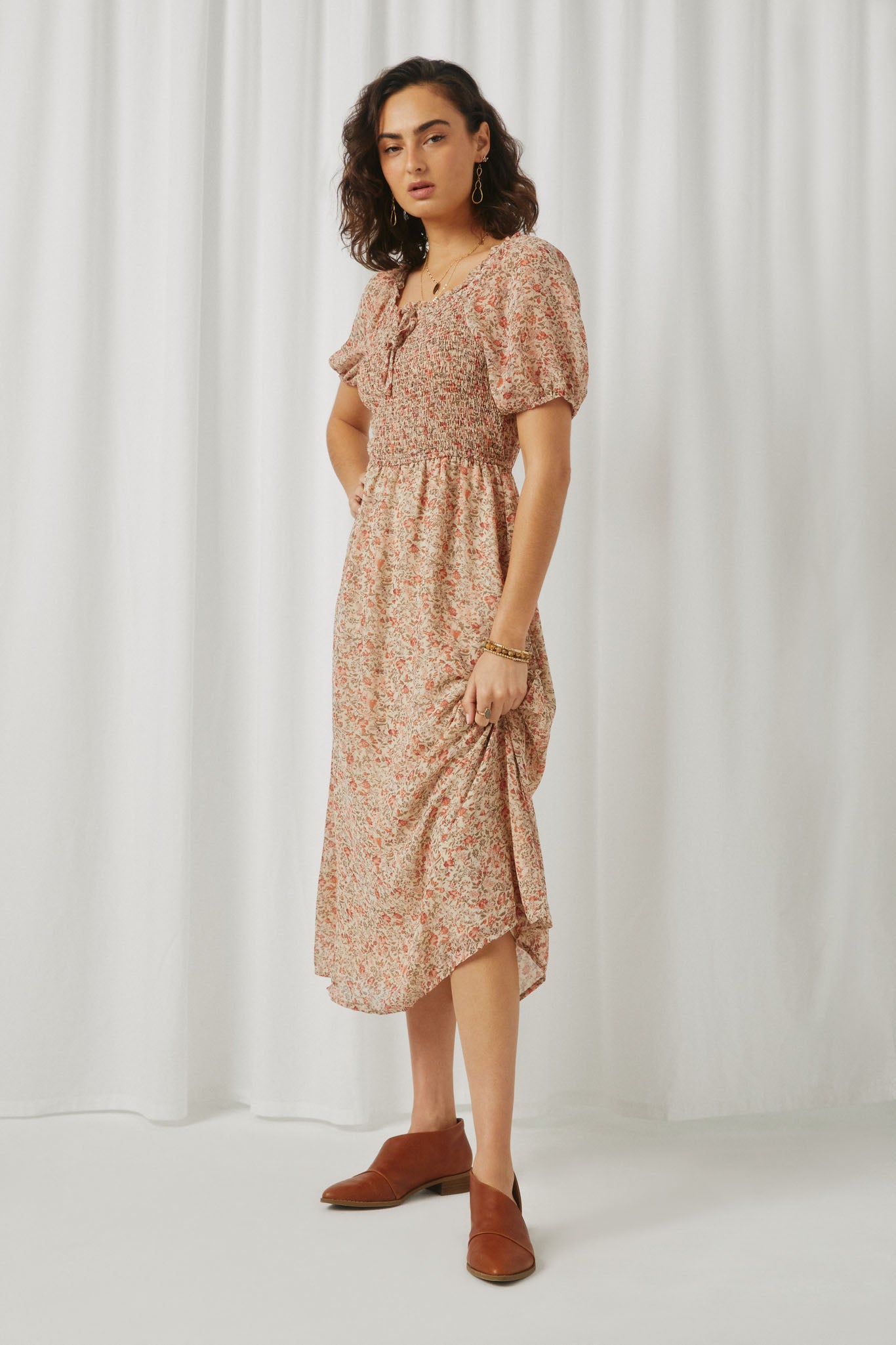 Our Ditsy Floral Puff Sleeve Smocked Square Neck Dress Features: