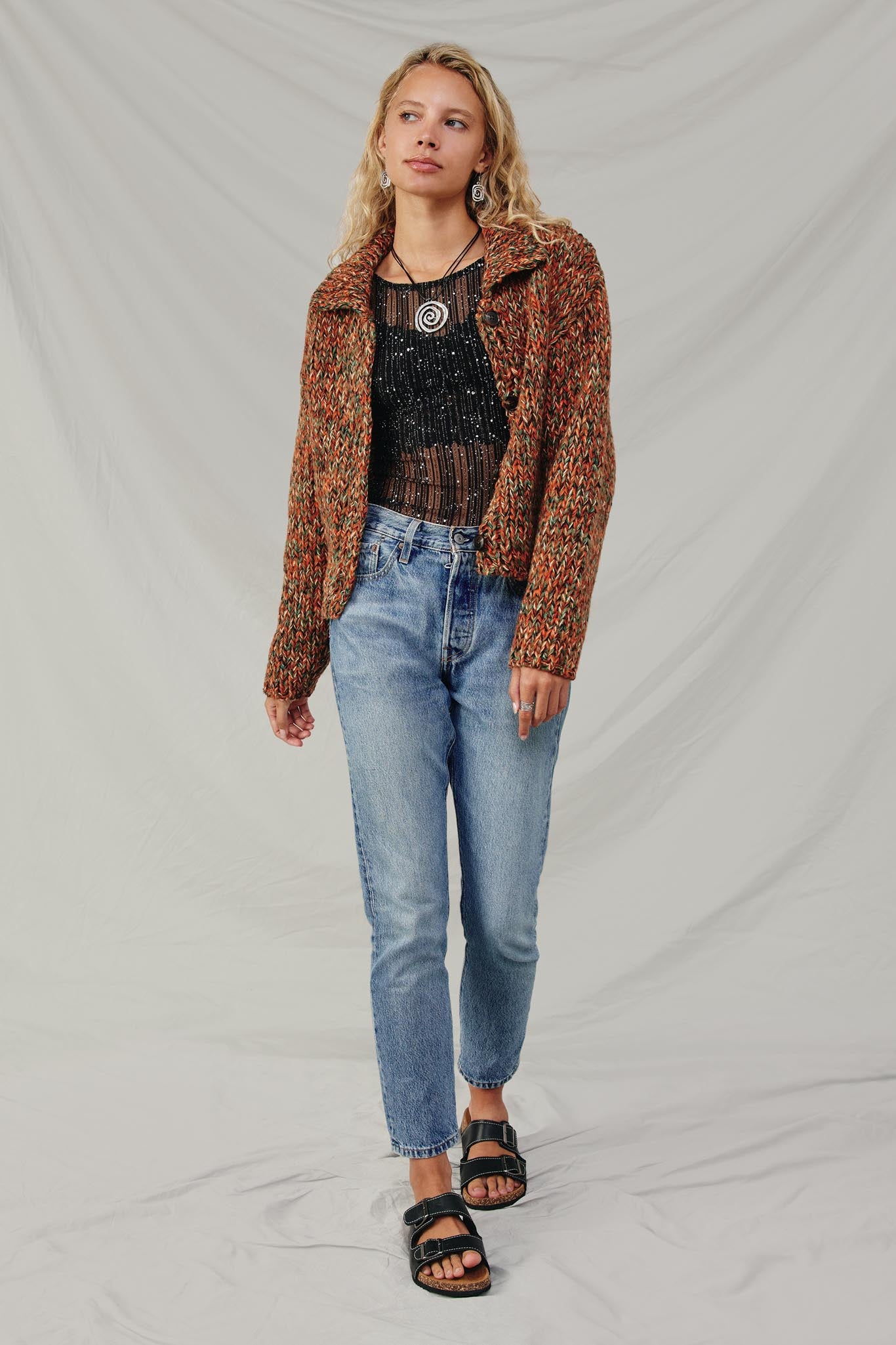 Our Multicolor Yarn Collared Button Sweater Cardigan Features: