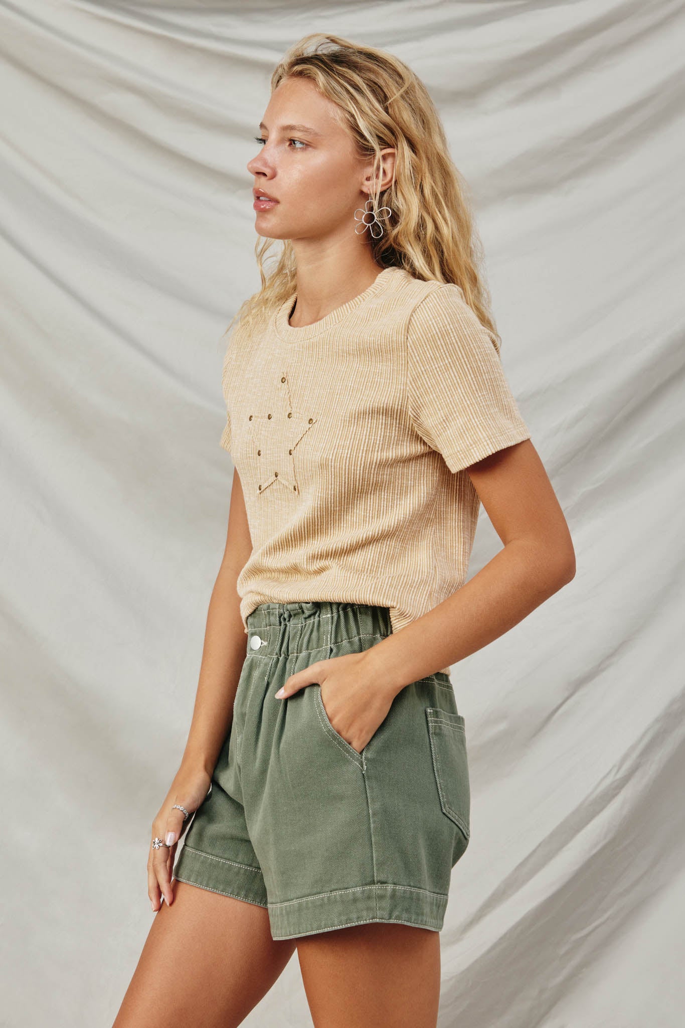 Our Studded Star Patch Textured Knit T Shirt Features: