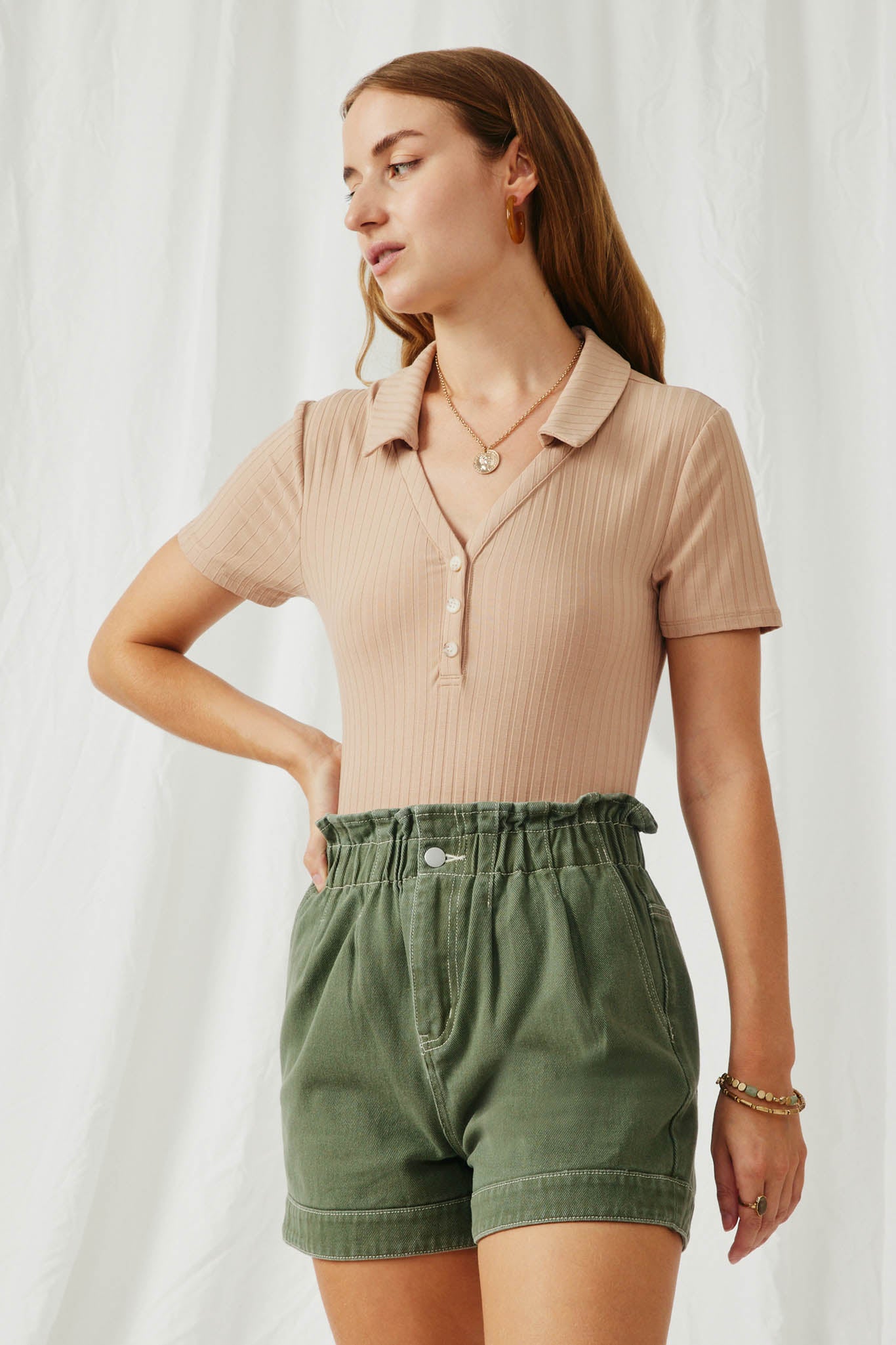 Our Back Cutout Collared Rib Bodysuit Features:
