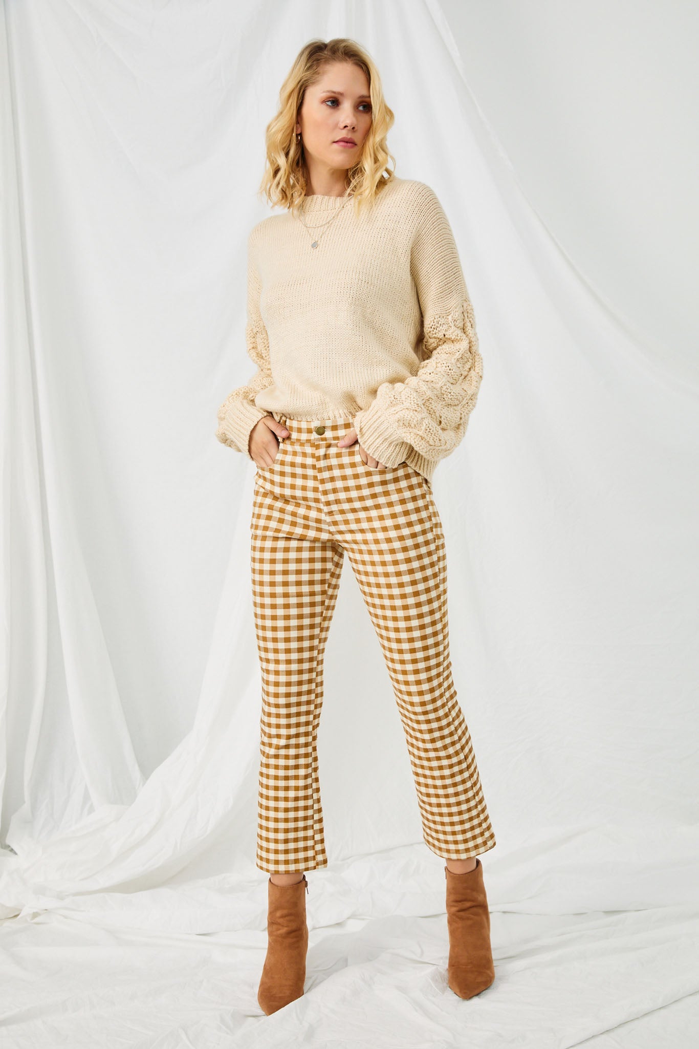 Our Button Closure Stretch Checkered Pants Features:
