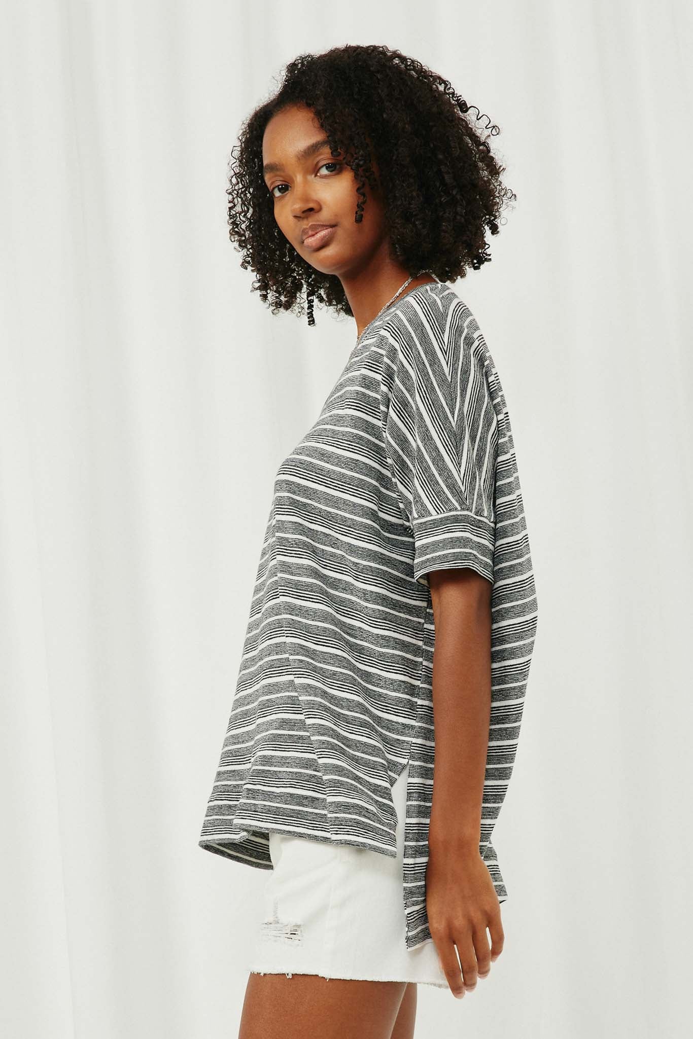 Engineered Stripe Oversize V-Neck High Low Knit Top