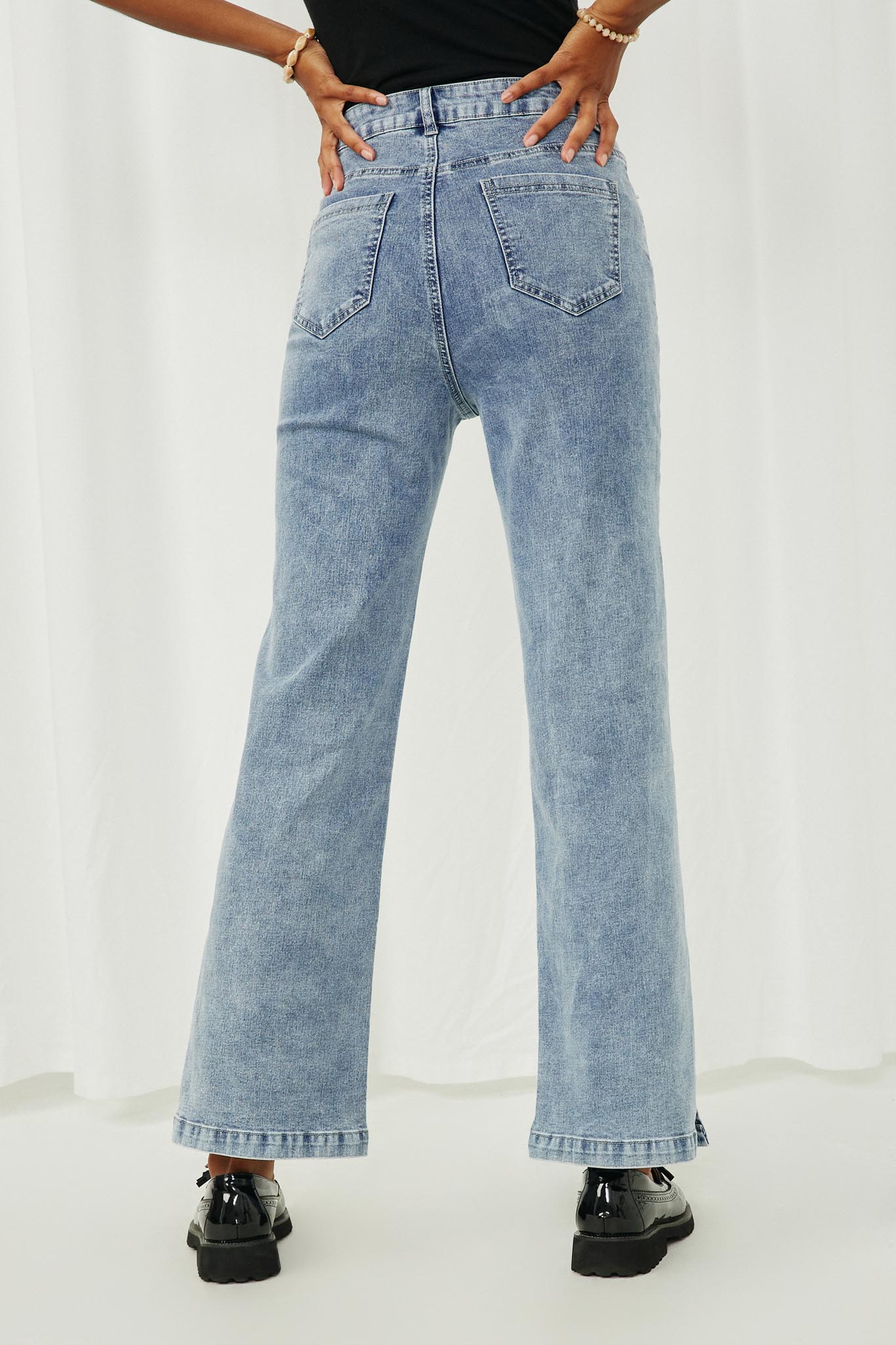 Our Side Slit Distressed Bootcut Stretch Denim Features:
