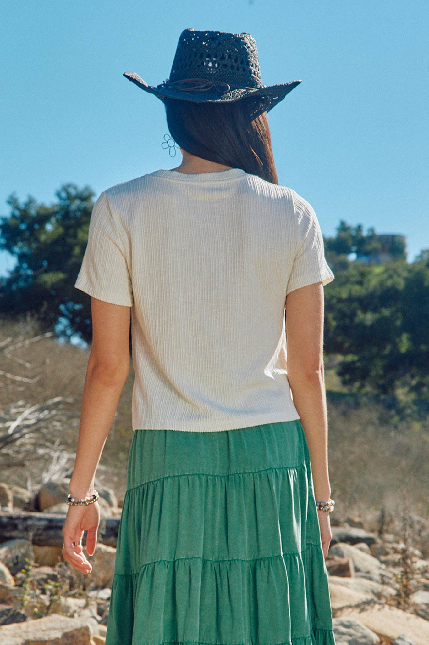 Our Studded Star Patch Textured Knit T Shirt Features:
