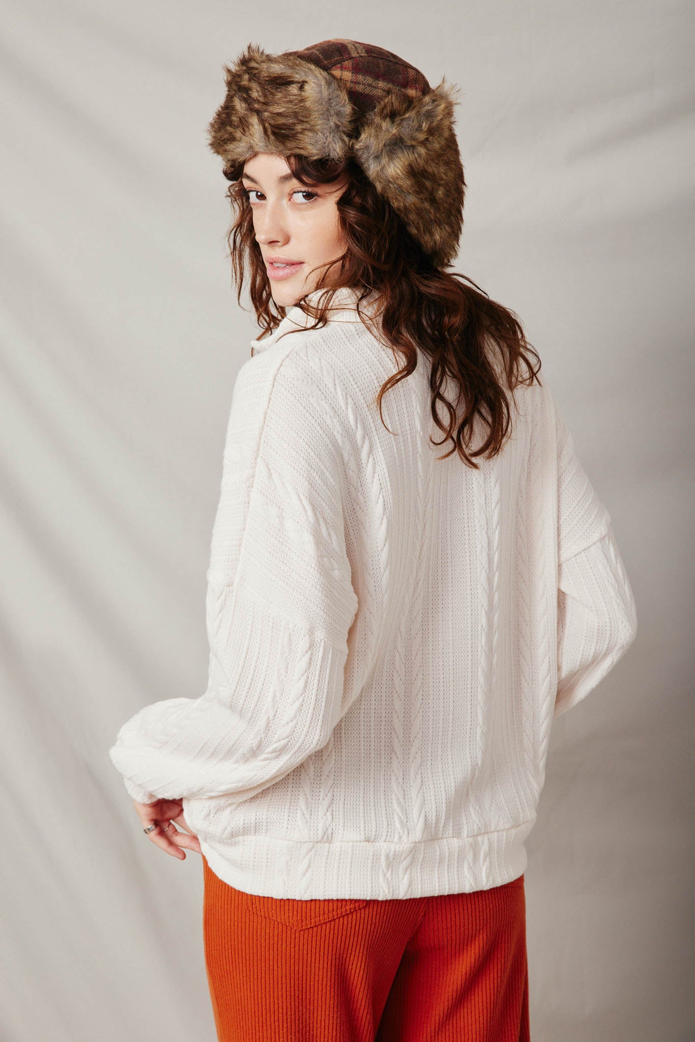 Cable Knit Long Sleeve Mock Neck Half Zip Top