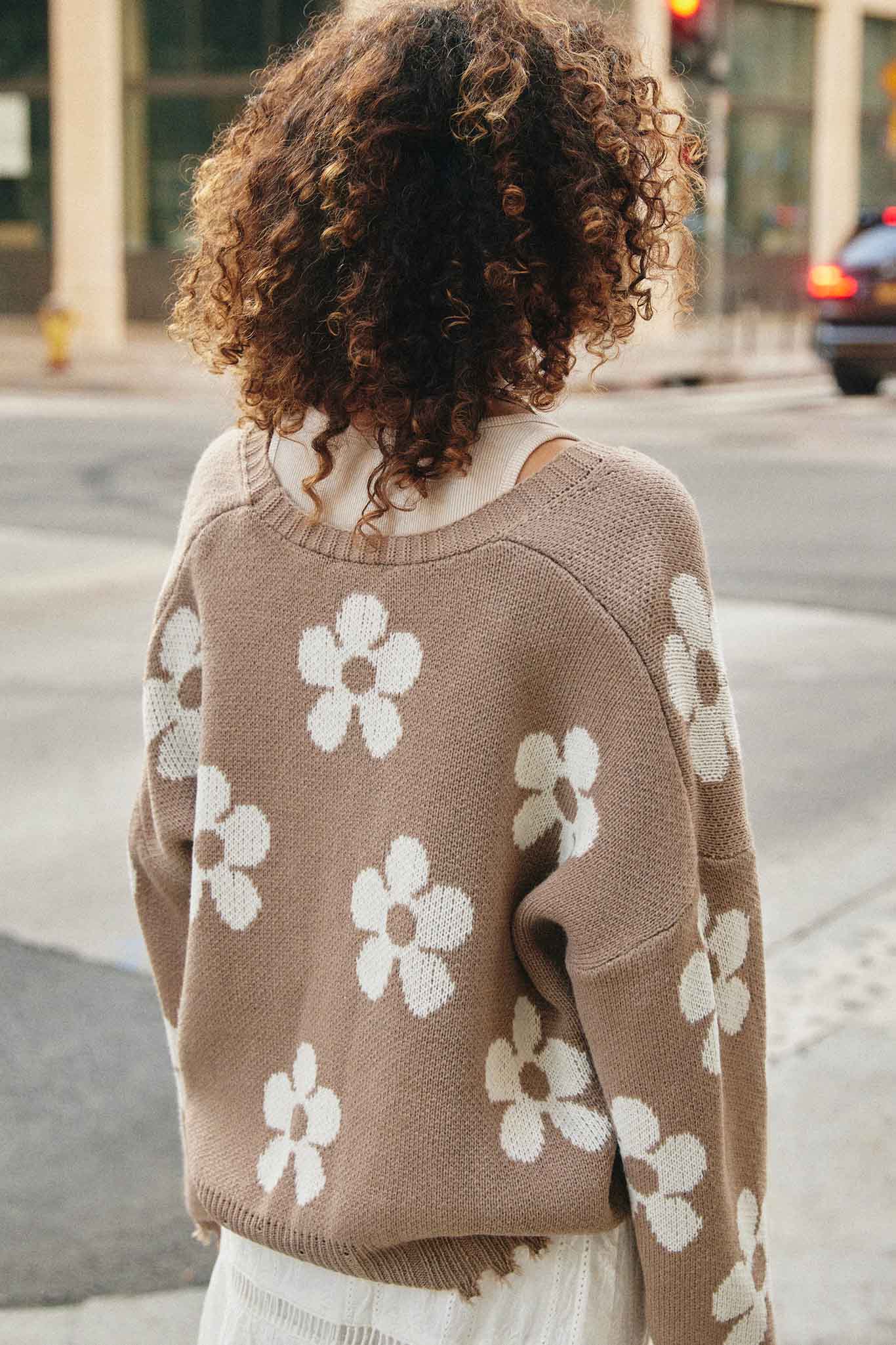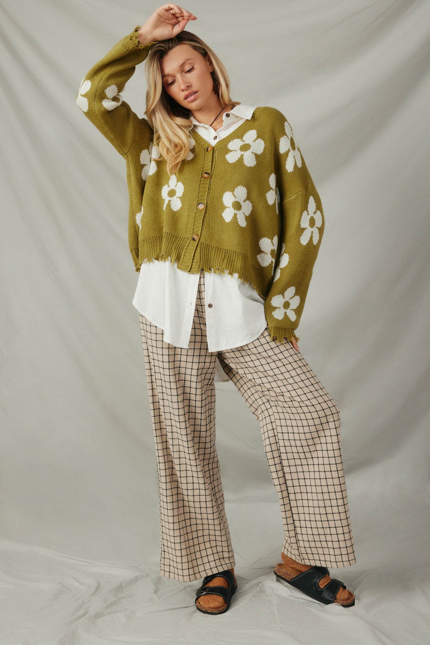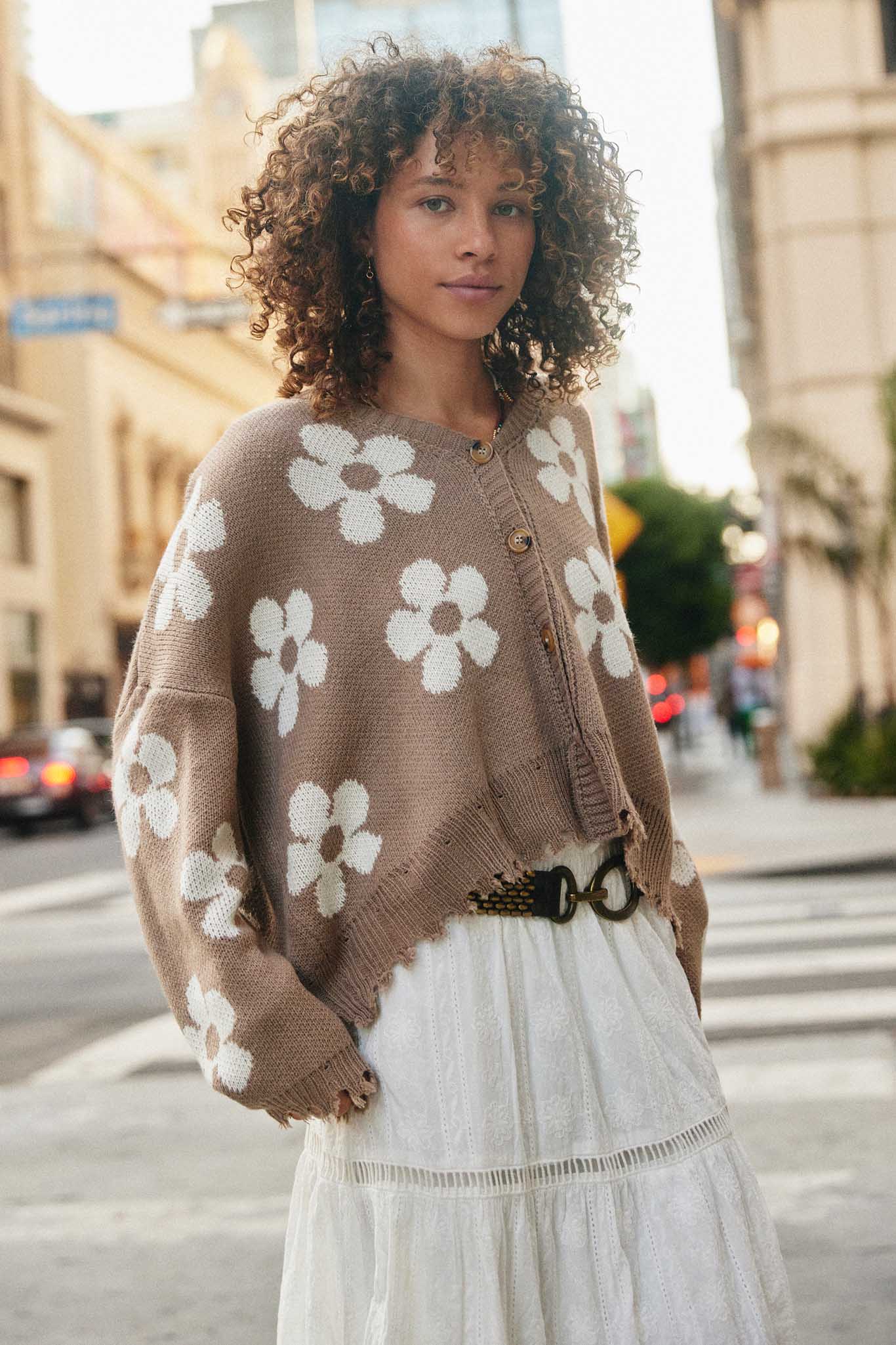 Our Womens Distressed Floral Patterned Cardigan Features: