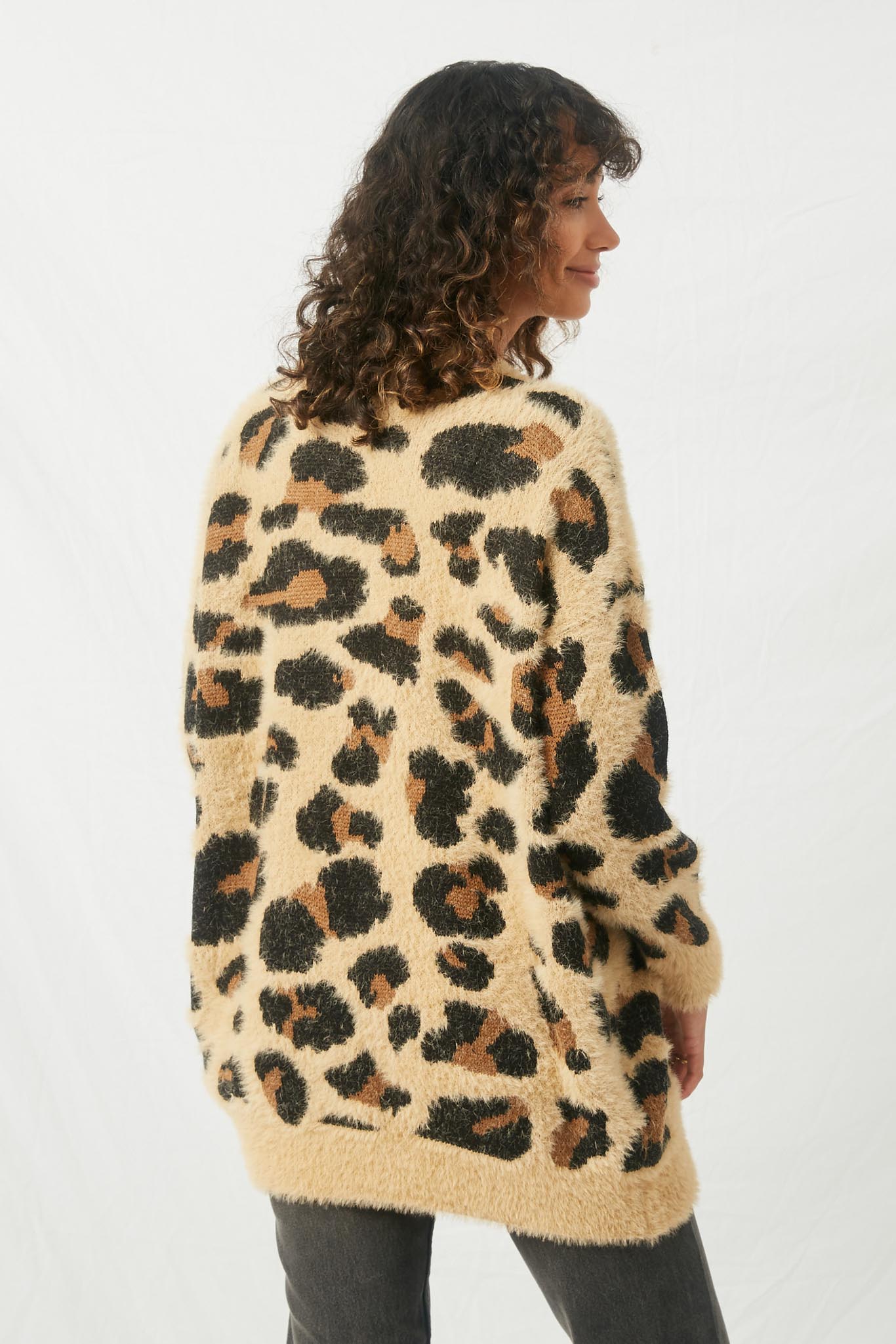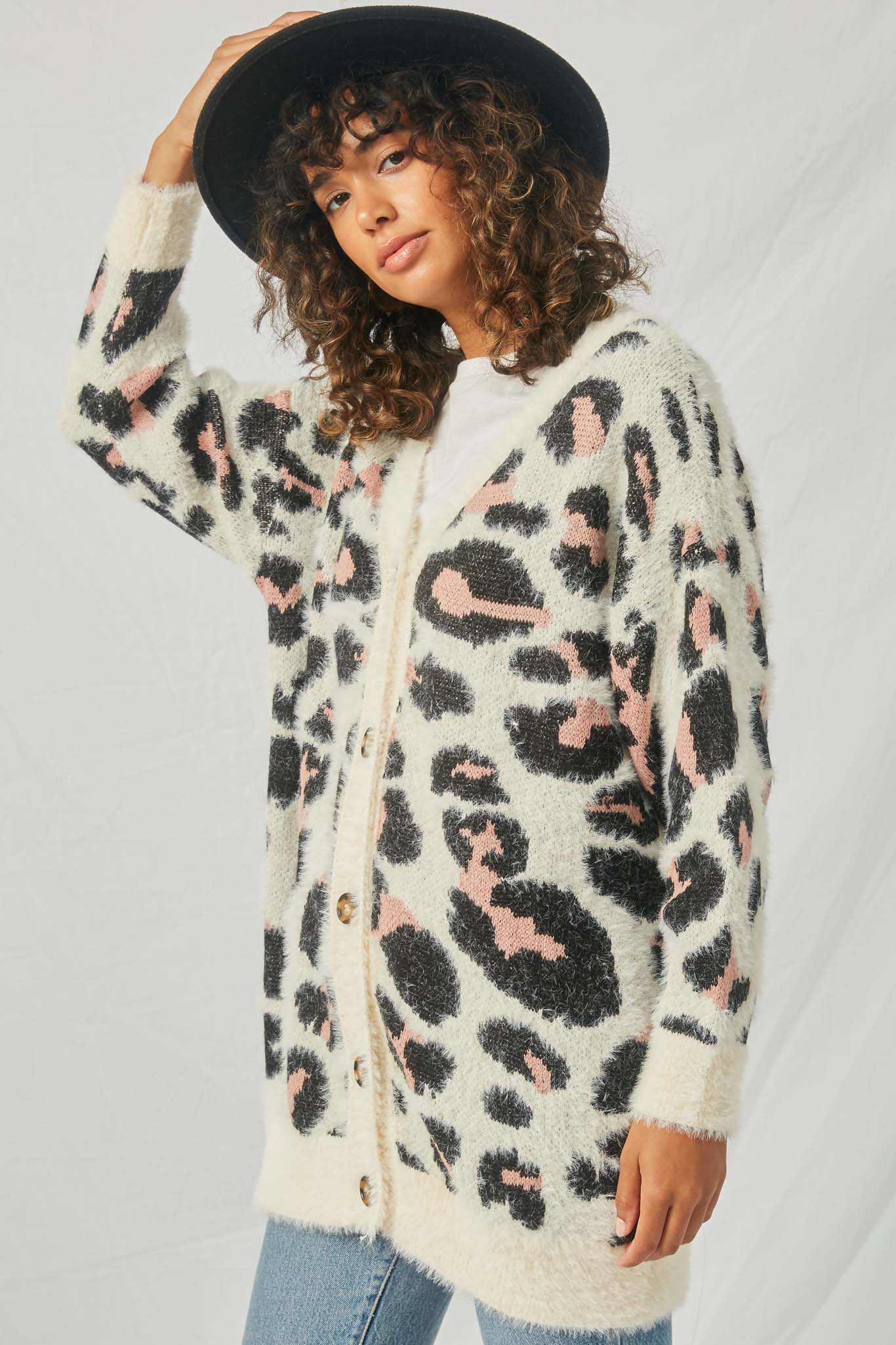 Our Fuzzy Leopard Sweater Cardigan Features: