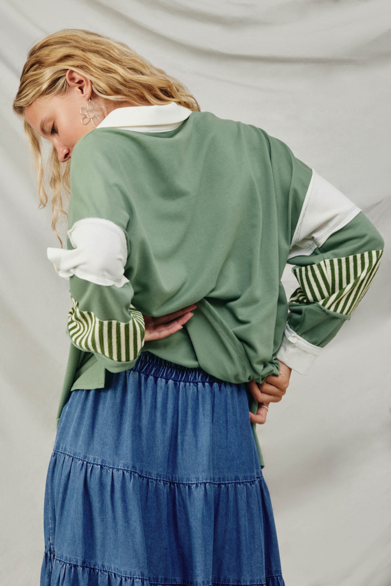 Our Womens Mixed Media Print Blocked Knit Rugby Shirt Features: