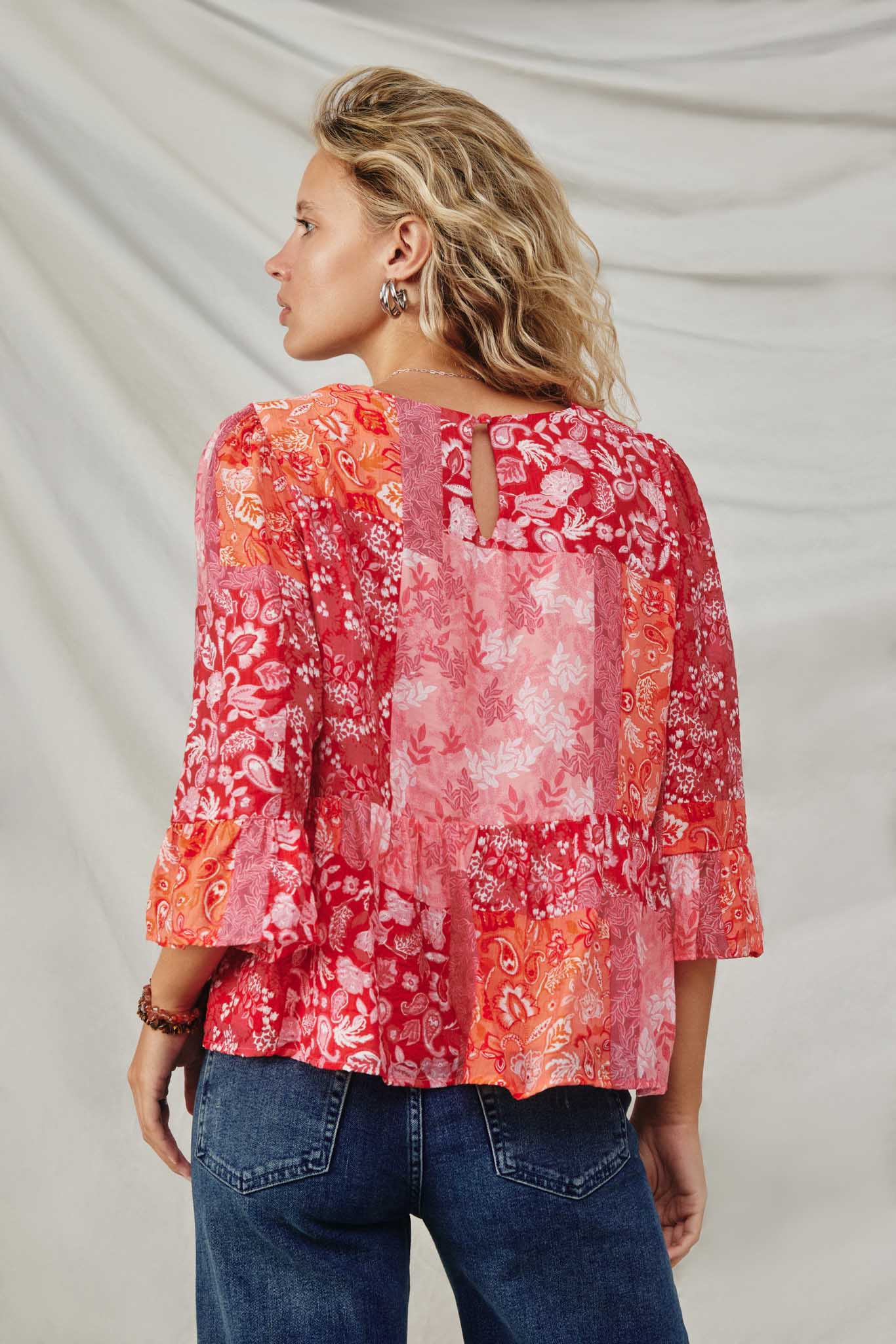 Our Print Blocked Cinch Sleeve Baby Doll Top Features: