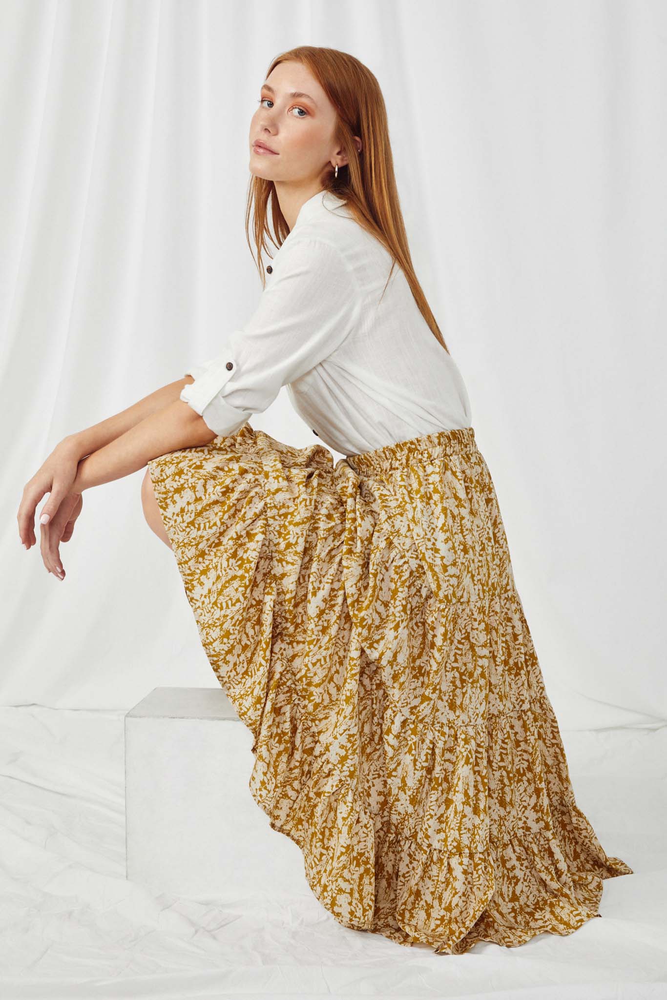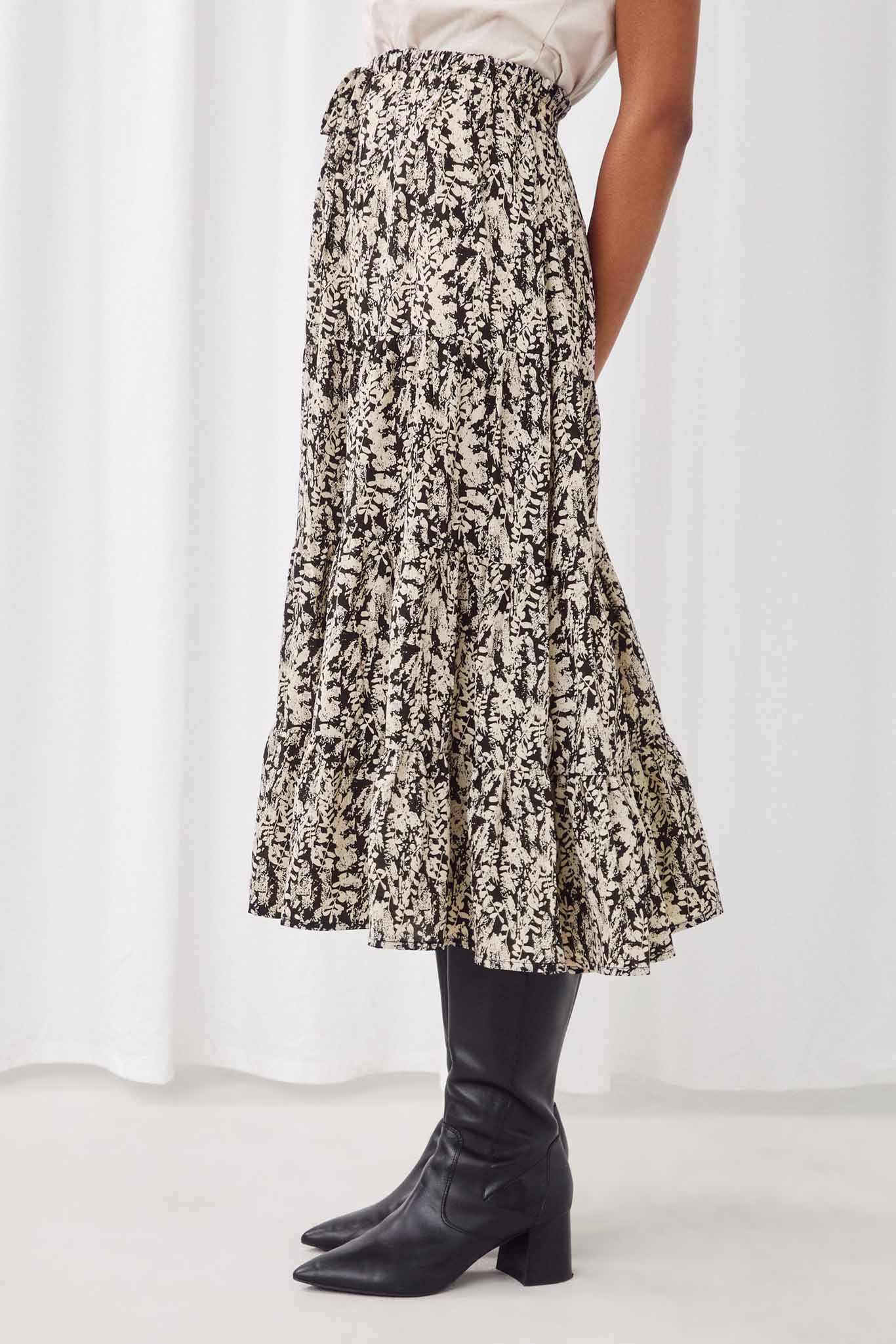 Our Botanical Print Elastic Waist Tiered Skirt Features: