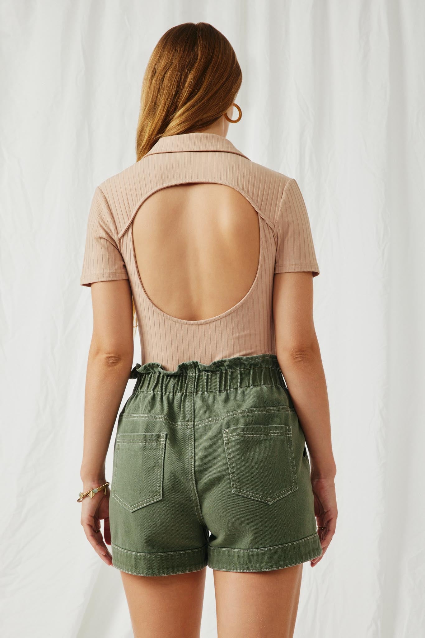 Our Washed Contrast Stitch Colored Denim Paperbag Shorts Features: