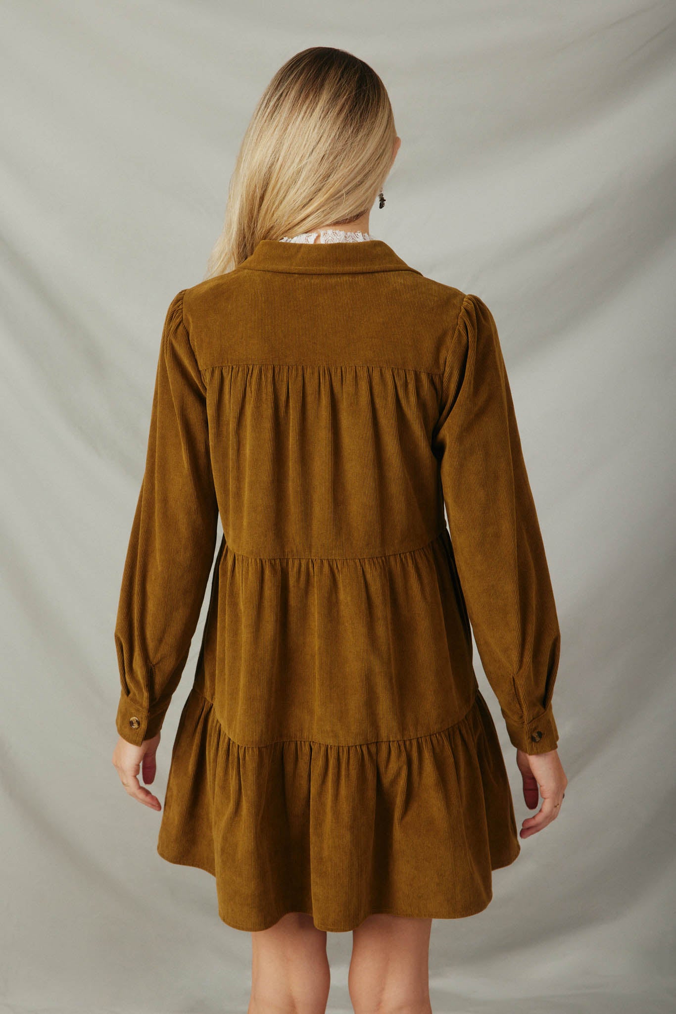 Our Corduroy Button Up Tiered Mini Dress Features: