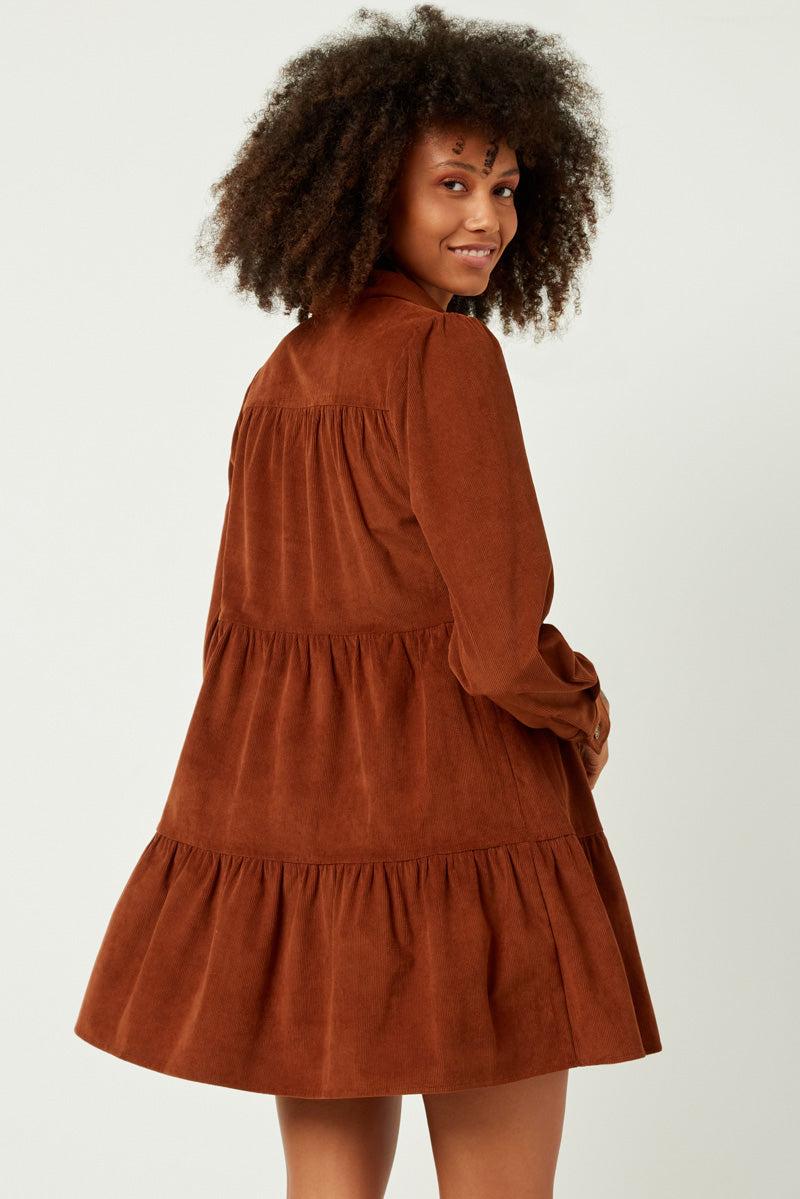 Our Corduroy Button Up Tiered Mini Dress Features: