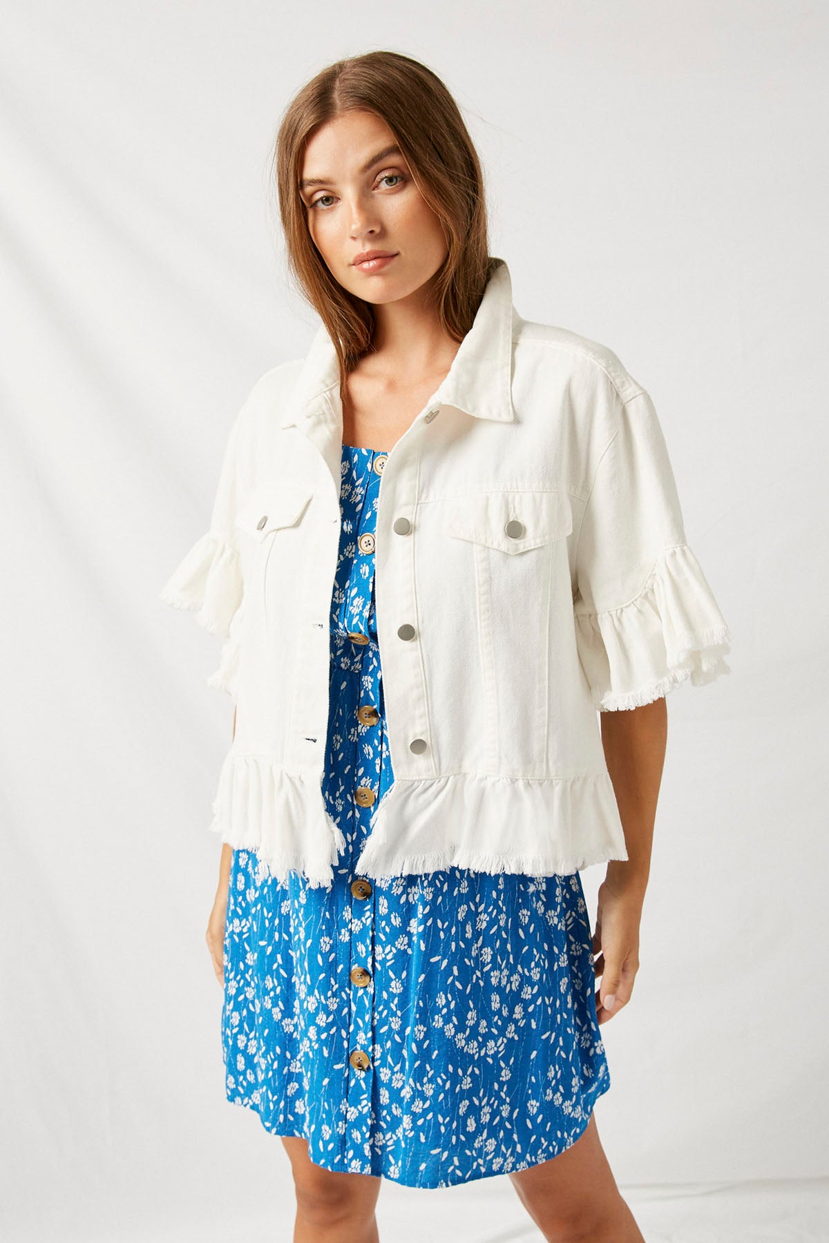 Product Details:Our Textured Stripe Ruffle Sleeve Button Detail Tiered Dress Features: Textured Woven Fabric Side Pockets Dress Lined Measurements: Size Length Chest Small 48" 18.25" Medium 48.75" 19.25" Large 49.5" 20.25" The measurements in the chart above reflect the garment...